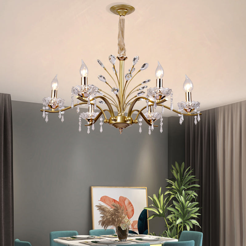 Contemporary Nordic Dome Branch Curved Rod Crystal Lampshade Iron 6/8/10 - Light Chandelier For Living Room
