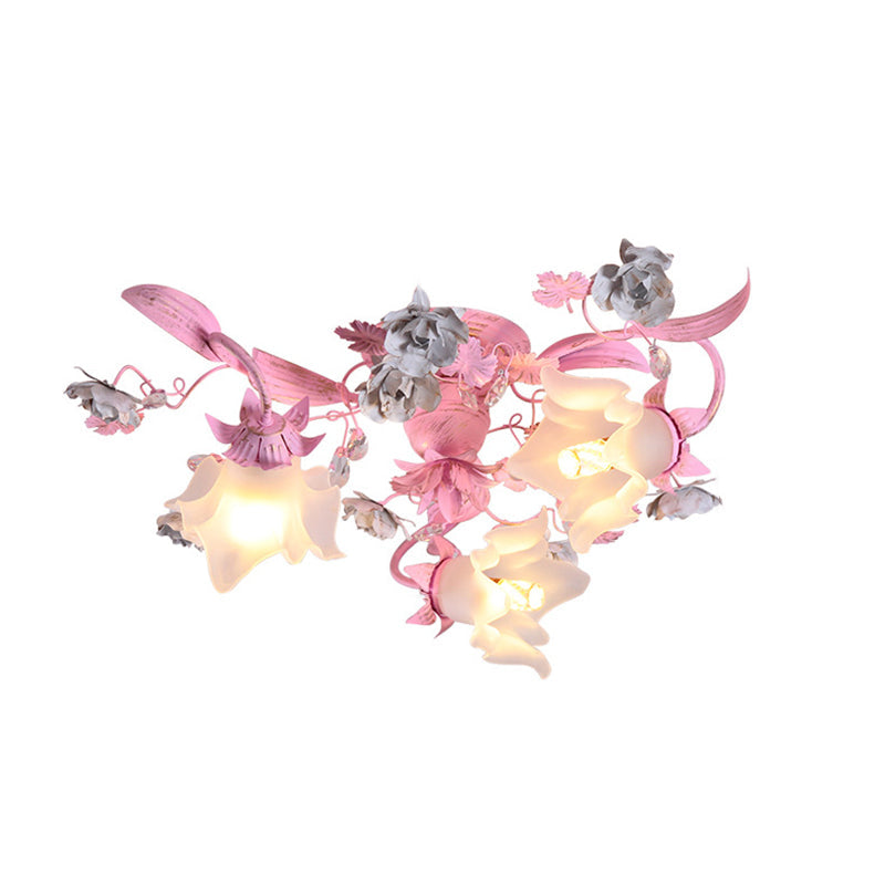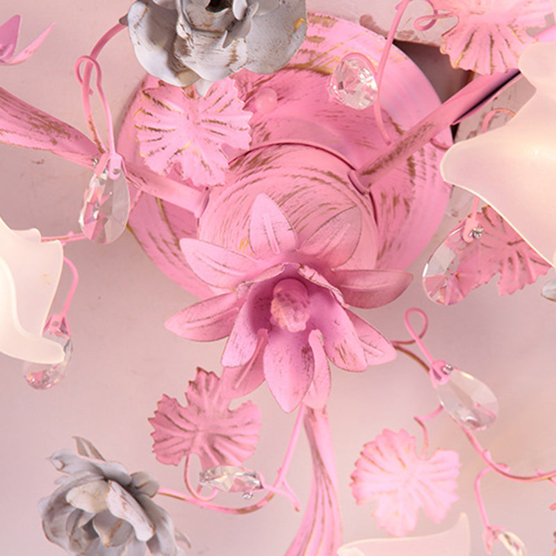 Contemporary Nordic Dome Branches Flowers Glass Crystal Iron 3 - Light Semi-Flush Mount Ceiling Light For Bedroom