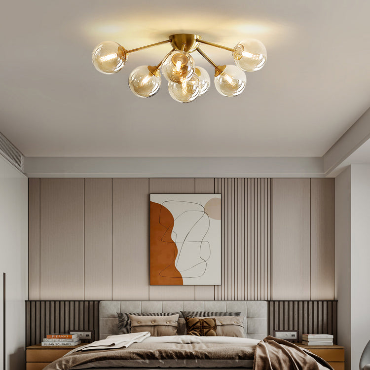 Contemporary Nordic Dome Bubble Orb Copper Glass Lampshade 7/10 - Light Semi-Flush Mount Ceiling Light For Living Room