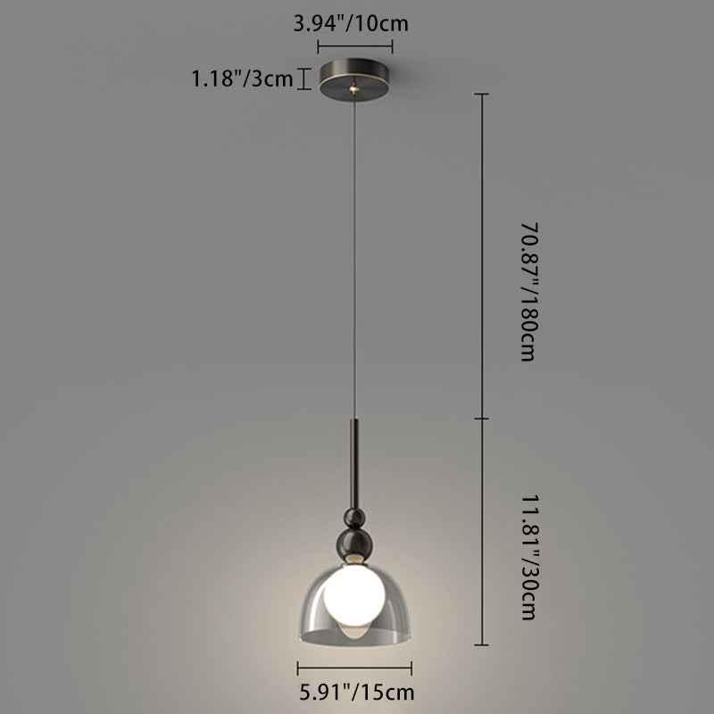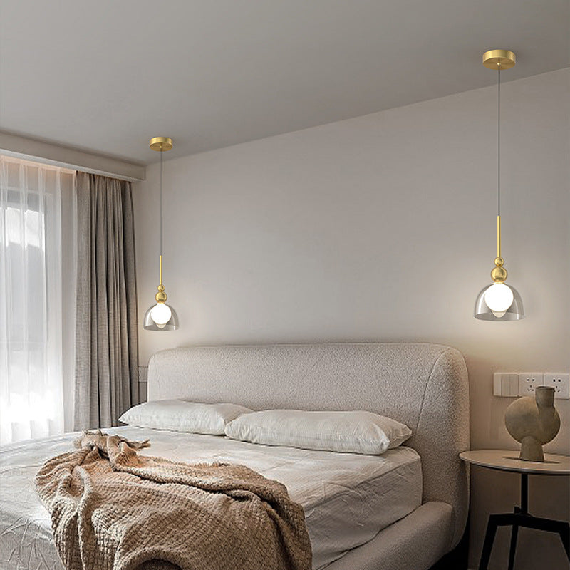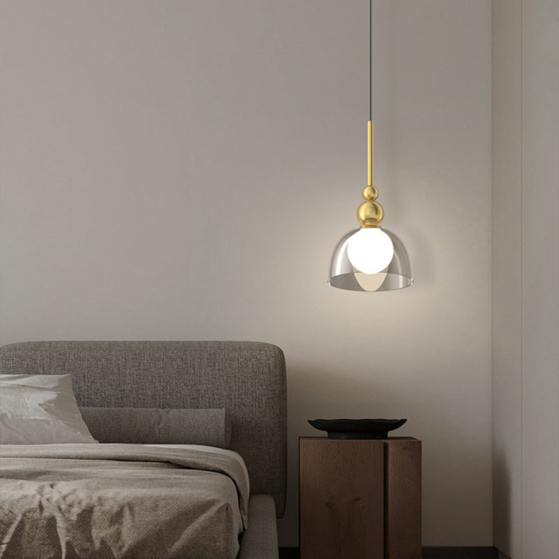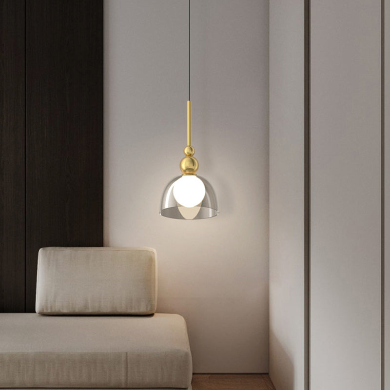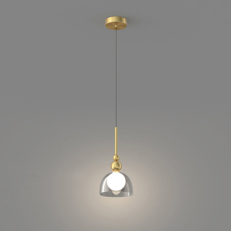 Contemporary Nordic Dome Copper Glass 1-Light Pendant Light For Living Room