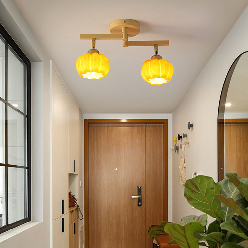 Contemporary Nordic Dome Pumpkin Resin Iron 2/3/4/5/6 - Light Semi-Flush Mount Ceiling Light For Living Room