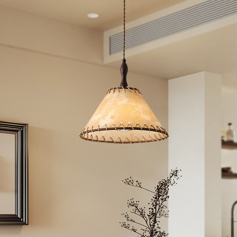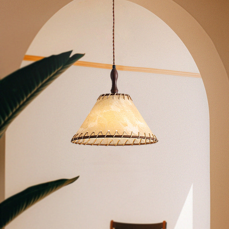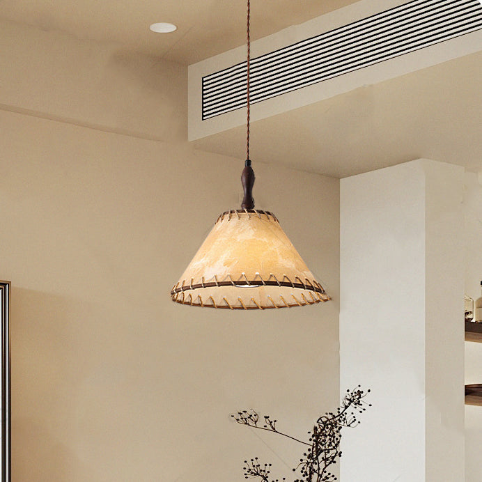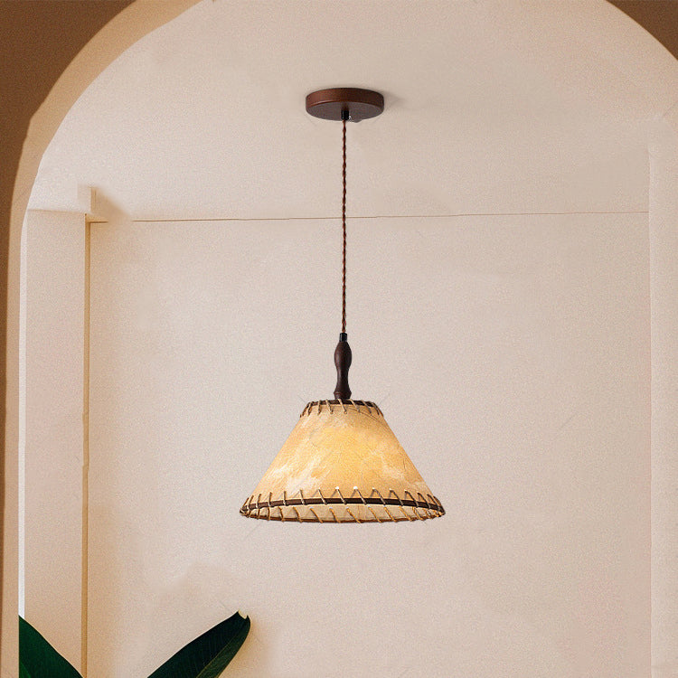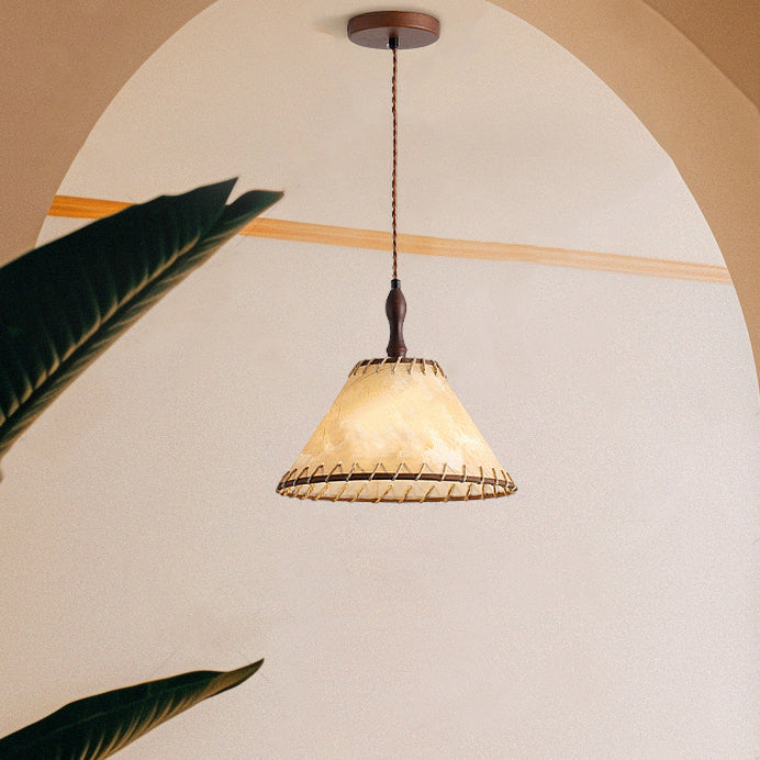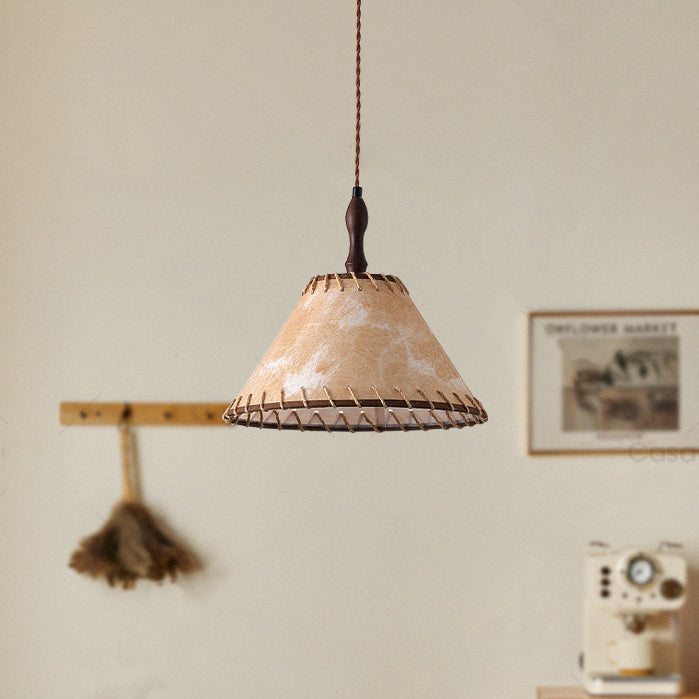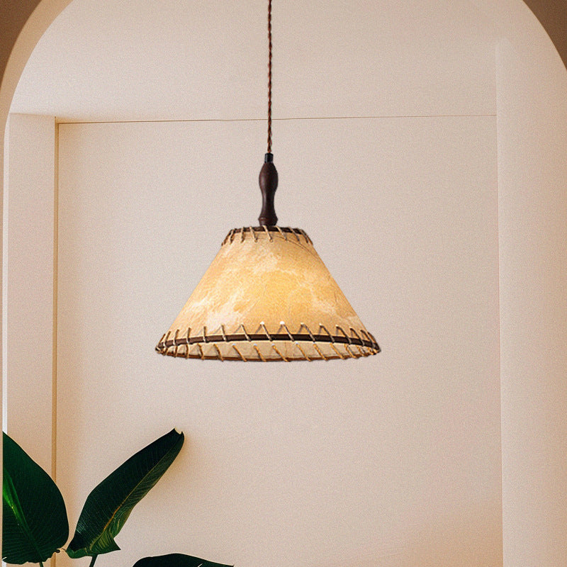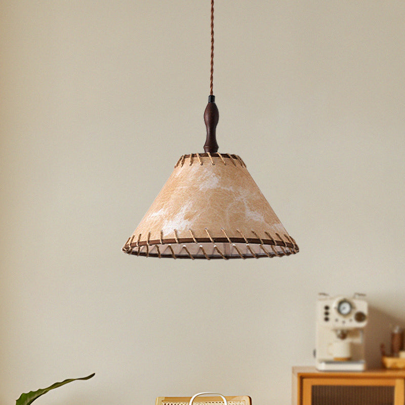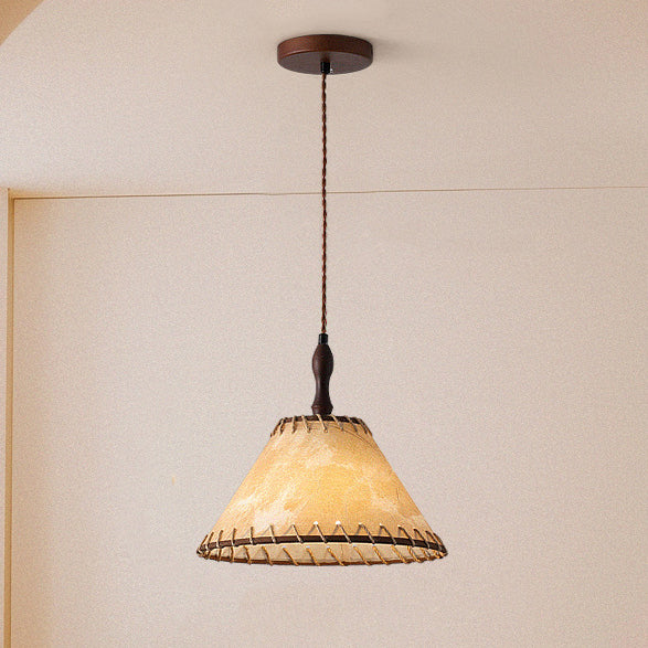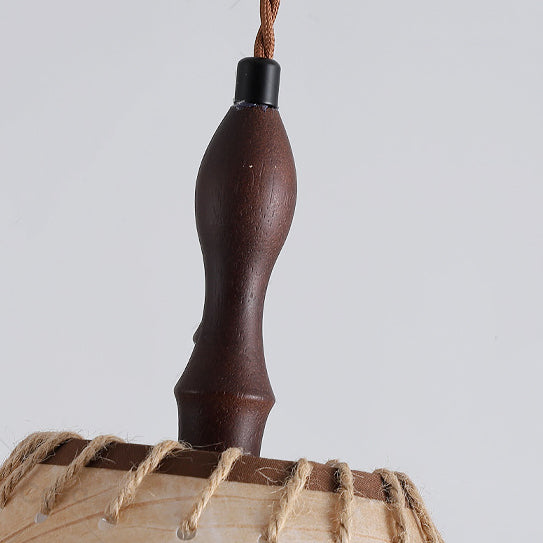 Contemporary Nordic Drum Iron Wood Fabric 1-Light Pendant Light For Living Room