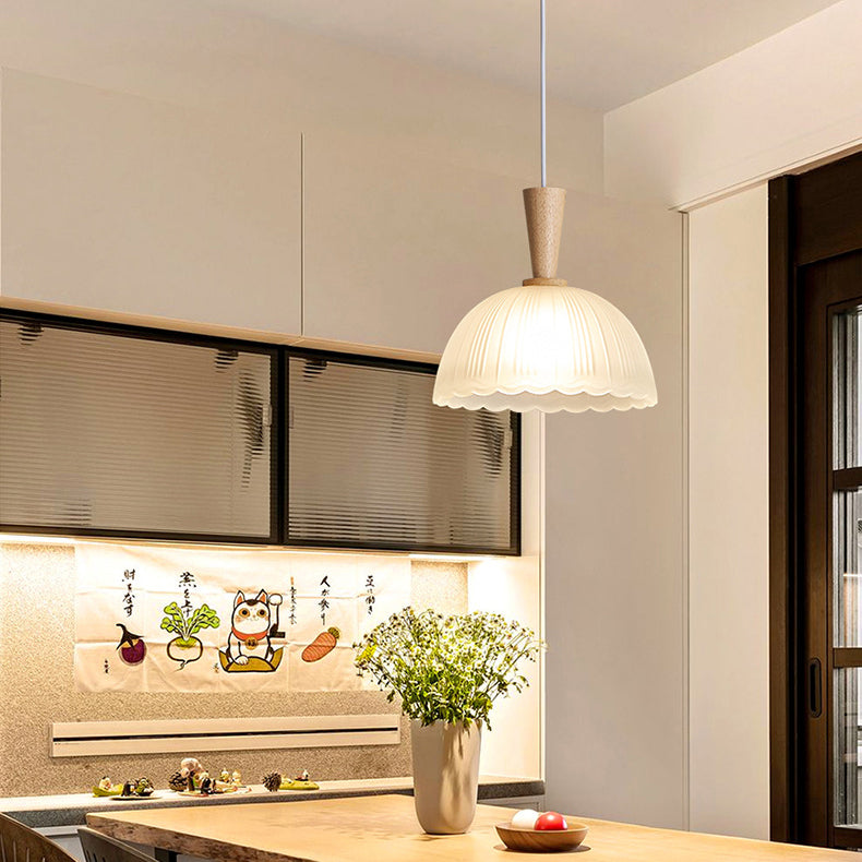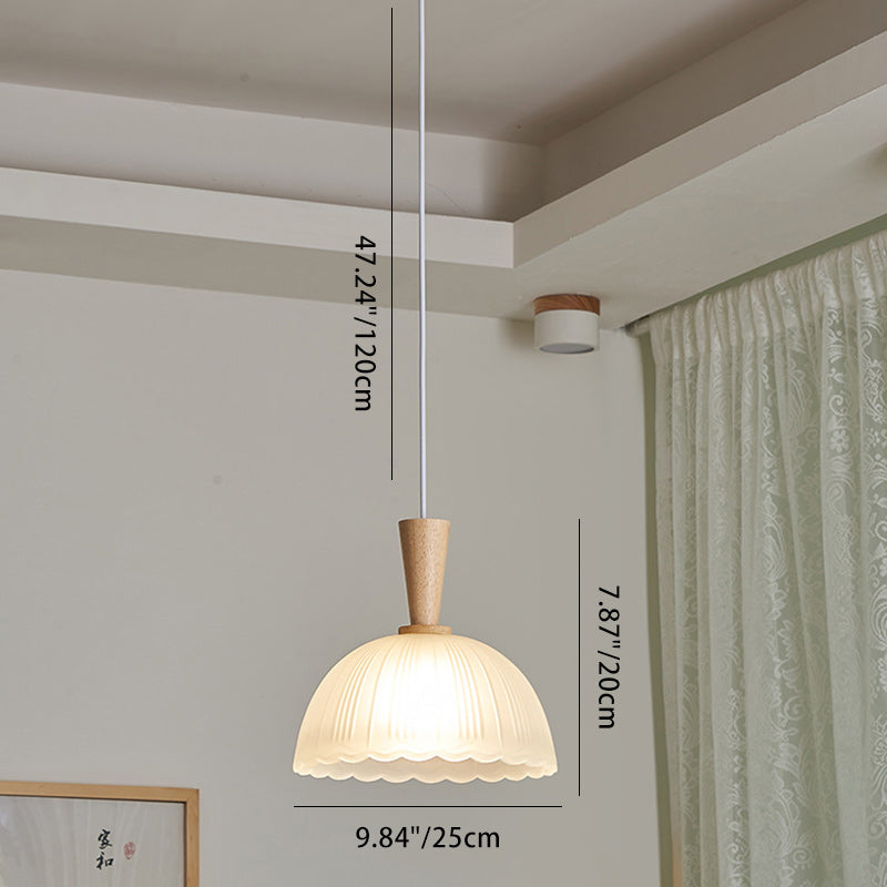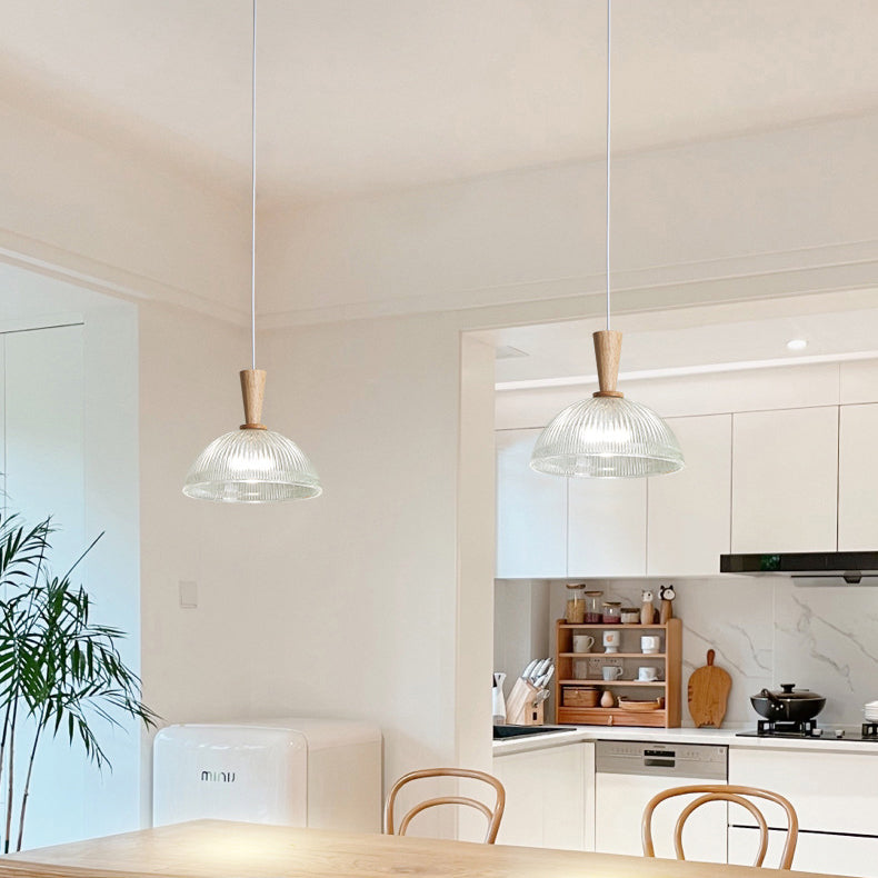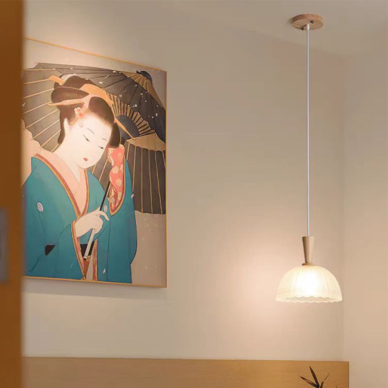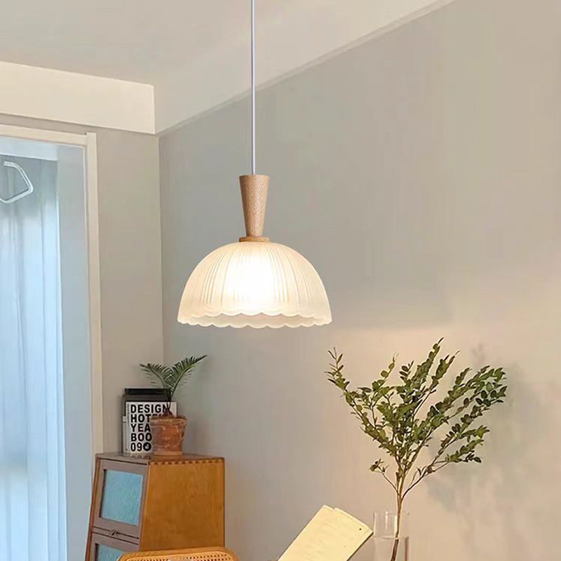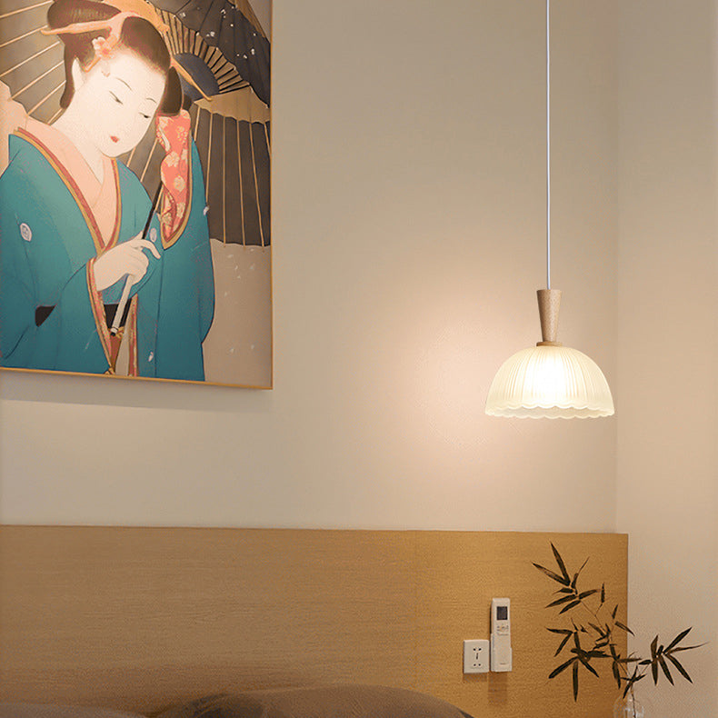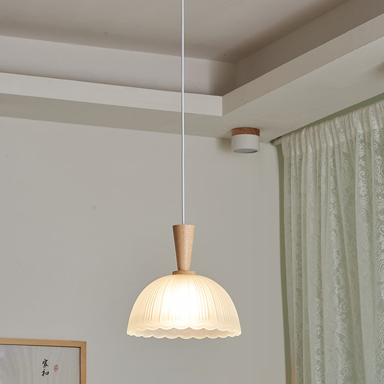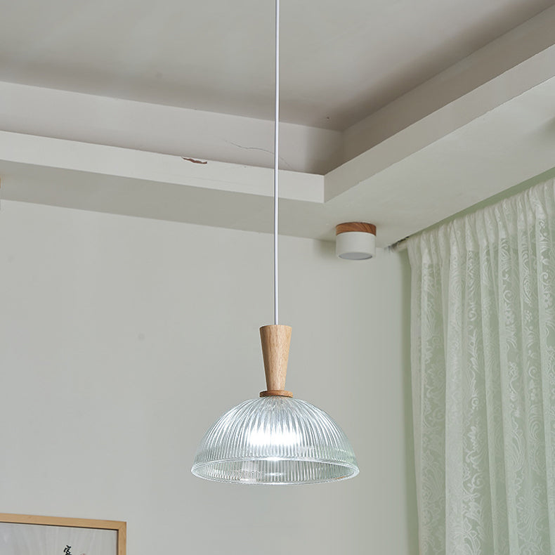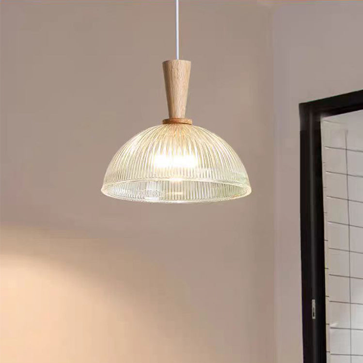 Contemporary Nordic Drum Wood Glass 1-Light Pendant Light For Living Room