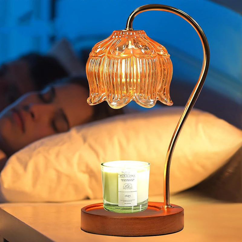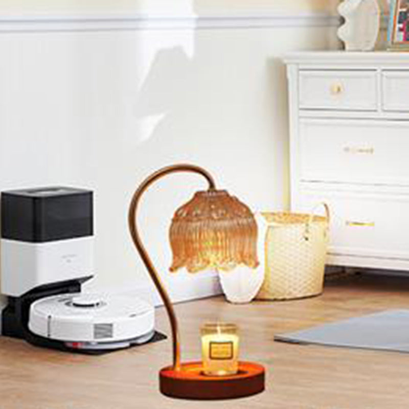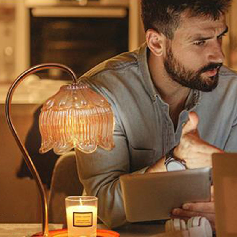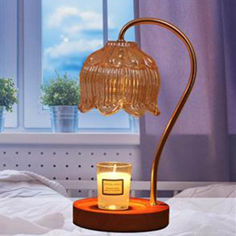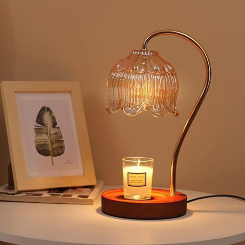Contemporary Nordic Flower Wood Iron Glass 1-Light Melting Wax Table Lamp For Living Room