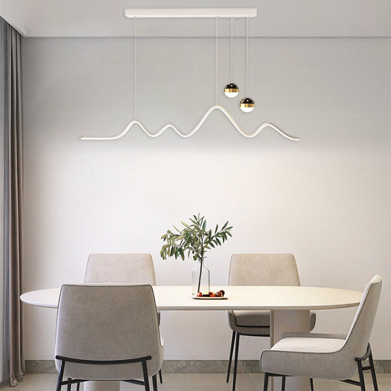 Contemporary Nordic Iron Acrylic Ball Line Wavy LED Island Light Chandeliers For Dining Room