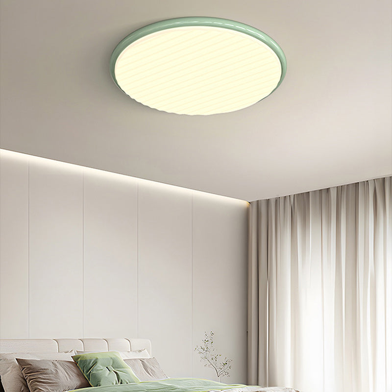 This ultra-thin flush mount ceiling light features a modern Nordic design with a round silhouette, crafted from iron and acrylic. With anti-rust, anti-corrosion properties and high light transmittance, it provides soft, eye-friendly LED illumination—perfect for bedrooms or living rooms in original wood, walnut, green, or off-white tones.