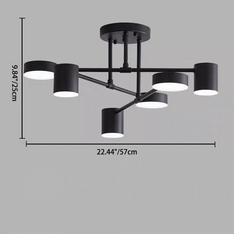 Contemporary Nordic Iron Aluminum Acrylic Round Cylinder Branch LED Semi-Flush Mount Ceiling Light For Living Room