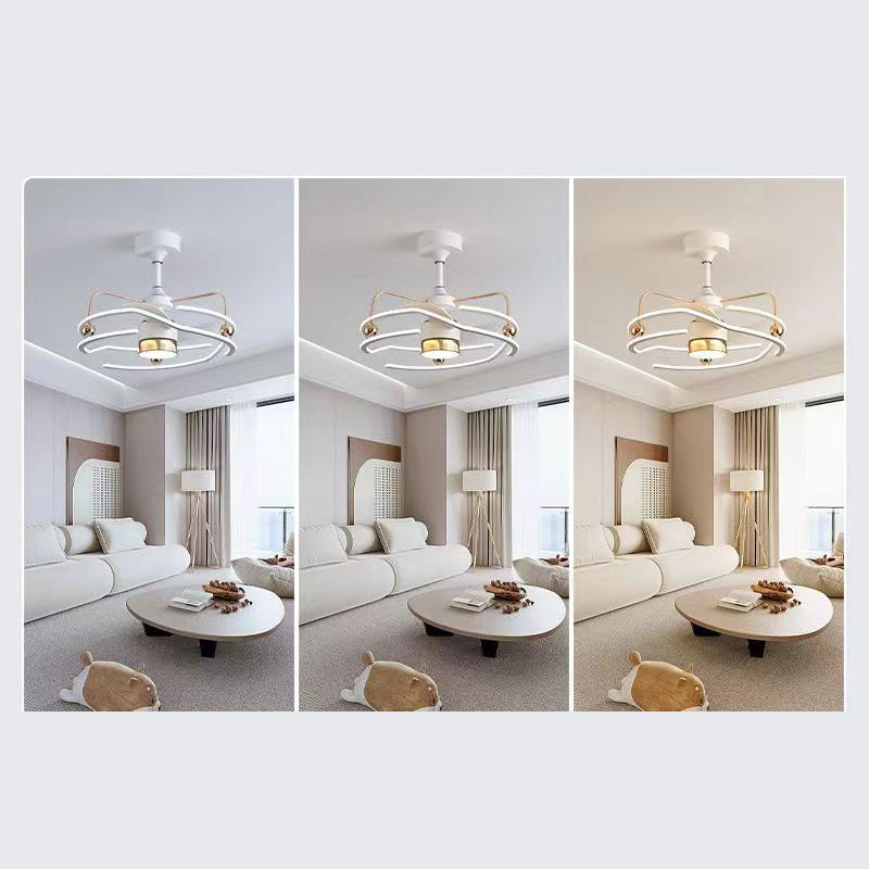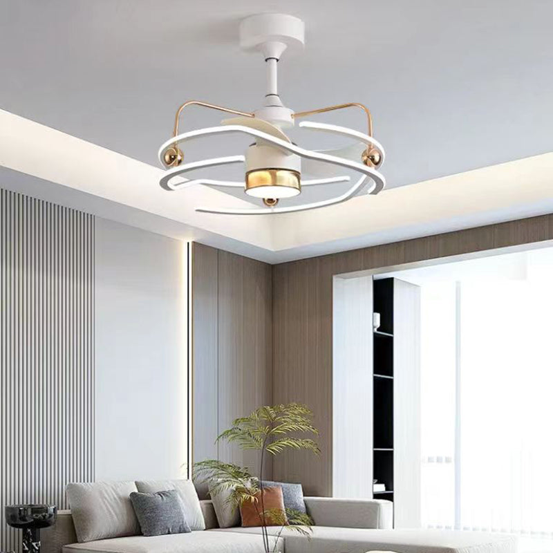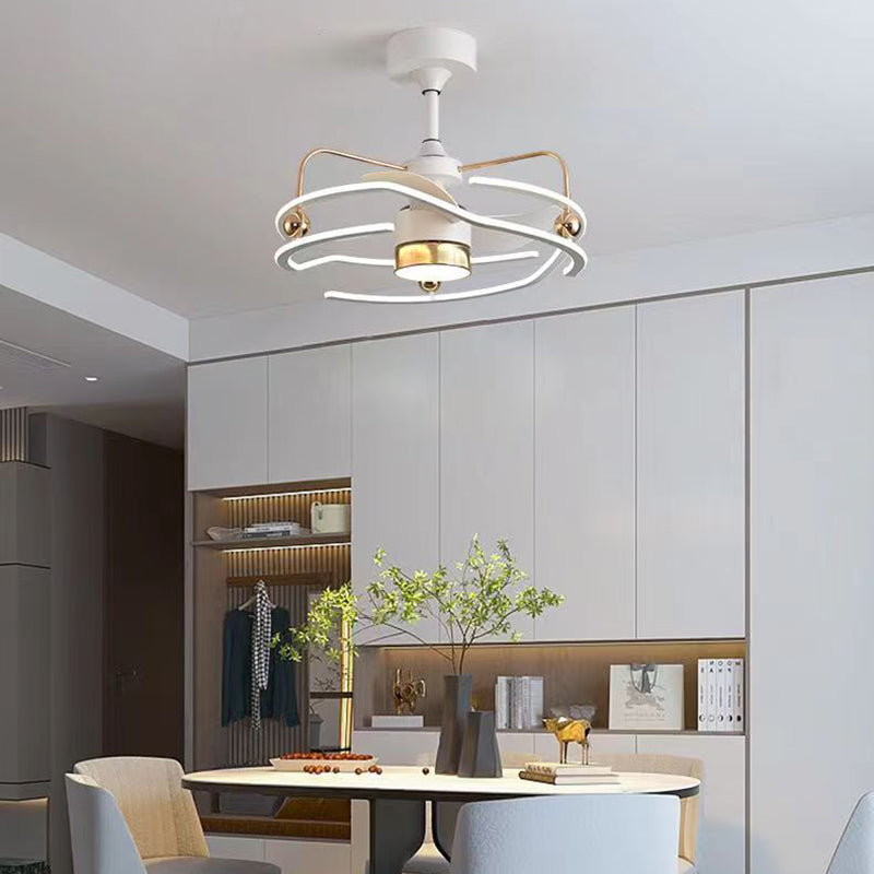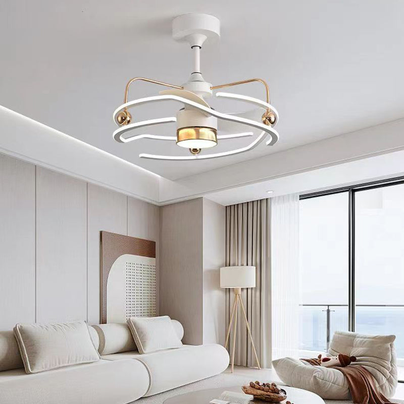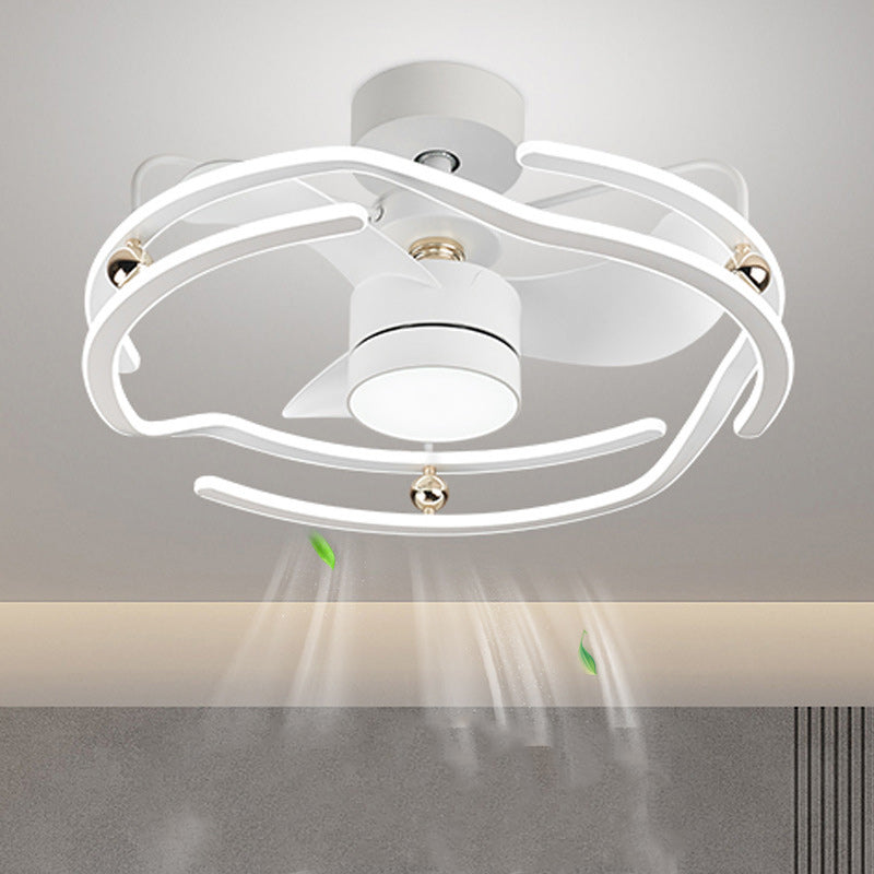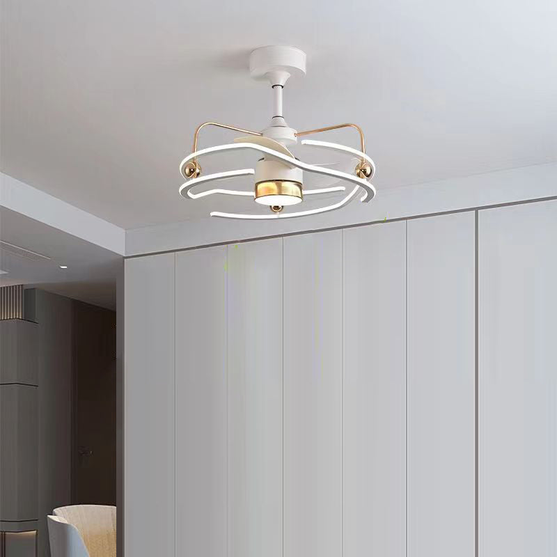Contemporary Nordic Iron Aluminum Acrylic Round Tornado LED Downrods Ceiling Fan Light For Bedroom