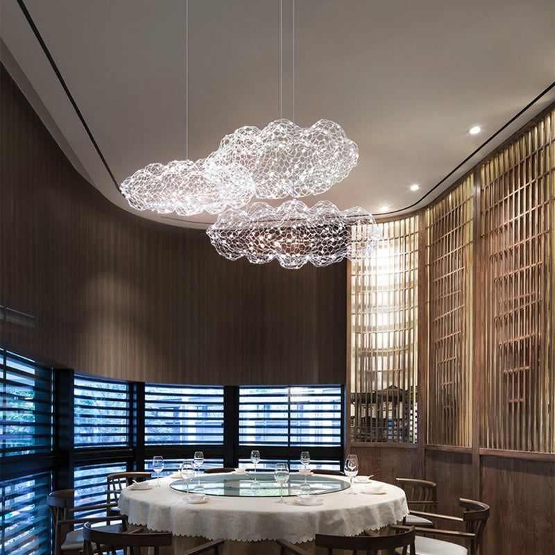 Contemporary Nordic Iron Cloud Starry LED Chandelier For Dining Room Decor
