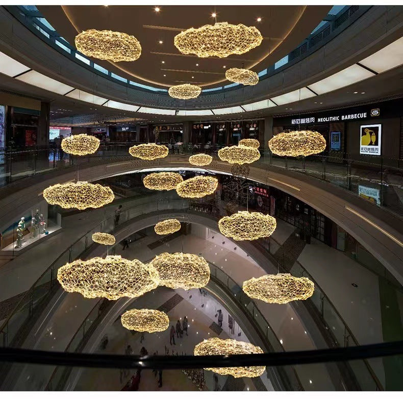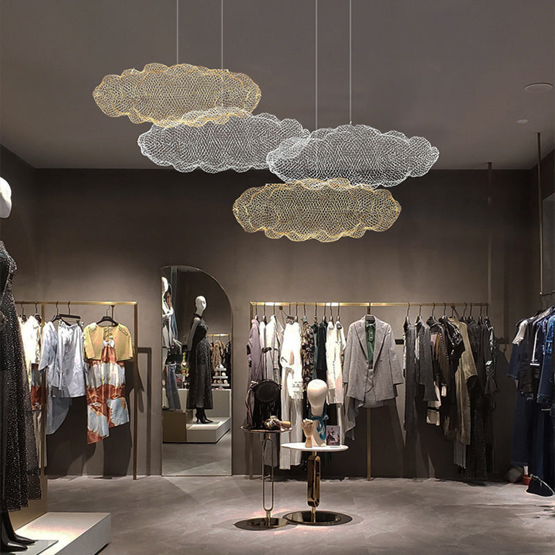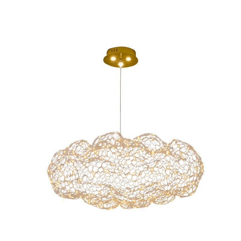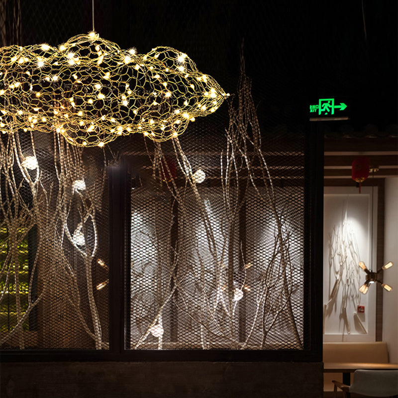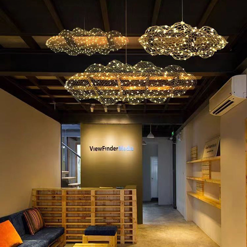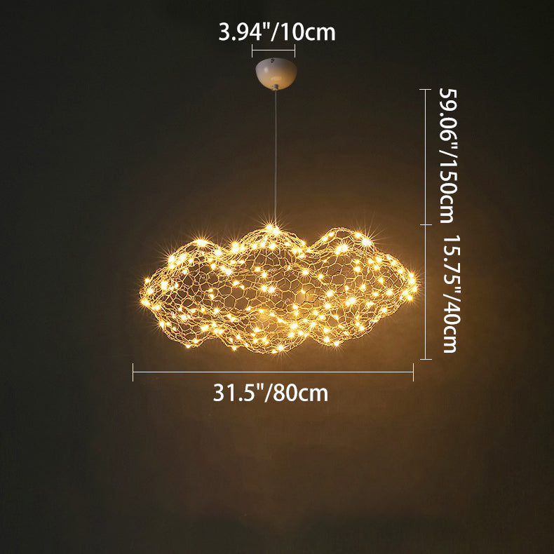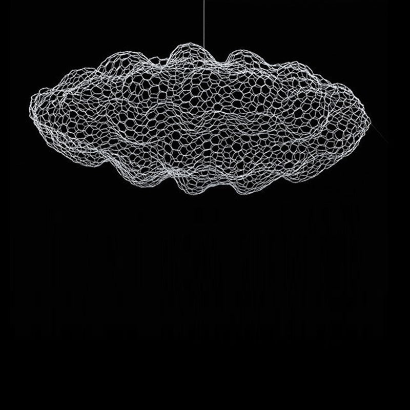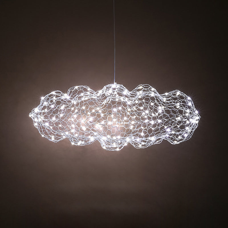 This silver cloud-shaped chandelier, made from durable iron wire, features a starry LED glow that adds a whimsical touch to your space. With adjustable chain for customizable height, it offers multiple size options and an optional base with 3 spotlights. Its stable structure and creative Nordic design make it a perfect choice for restaurants, galleries, or playful interiors.