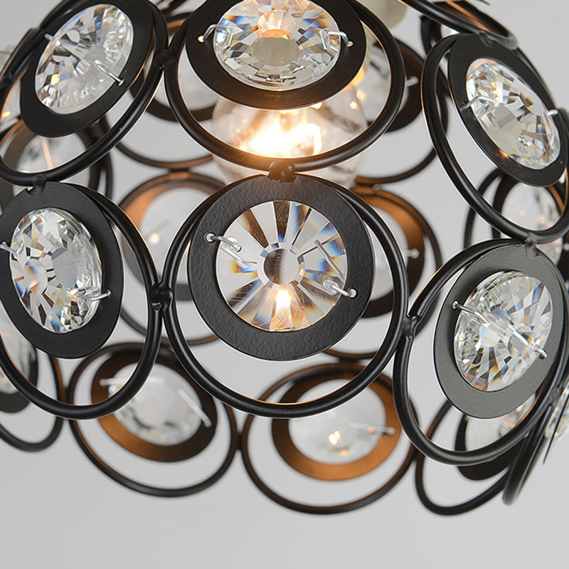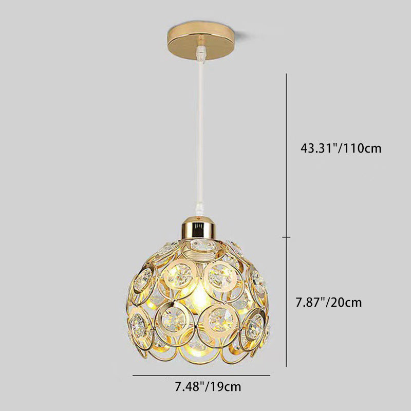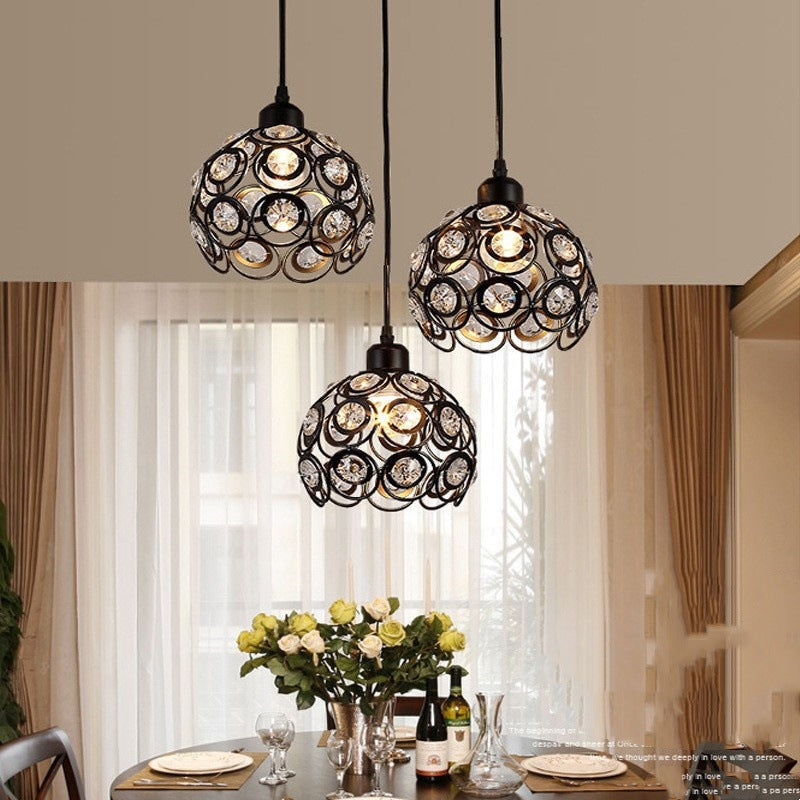 Contemporary Nordic Iron Crystal Ball Round Piece 1-Light Pendant Light For Dining Room