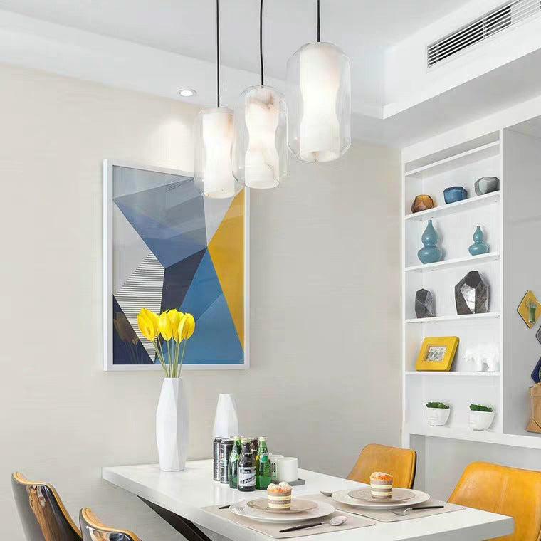 Contemporary Nordic Iron Glass Ball Cylinder 1-Light Pendant Light For Dining Room