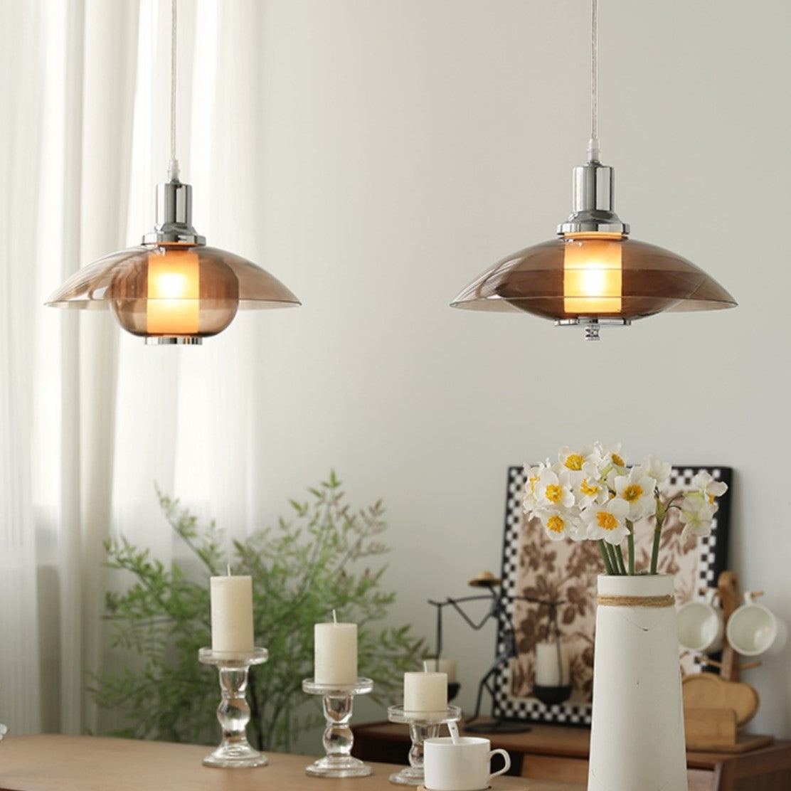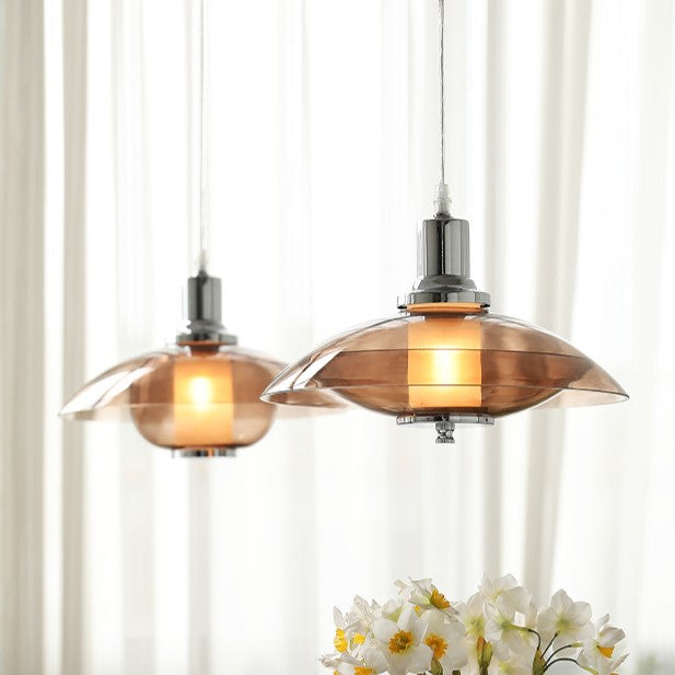 Contemporary Nordic Iron Glass Round Shape 1-Light Pendant Light For Bedroom