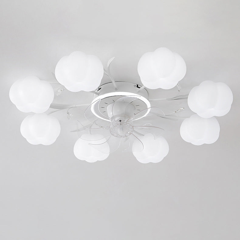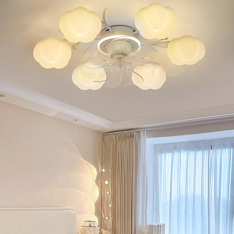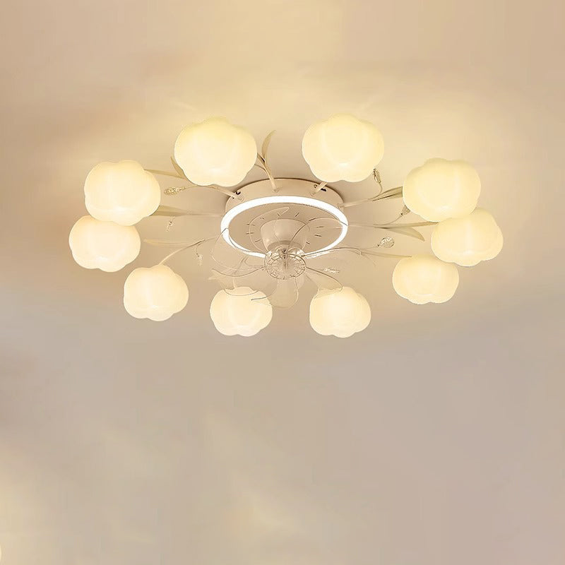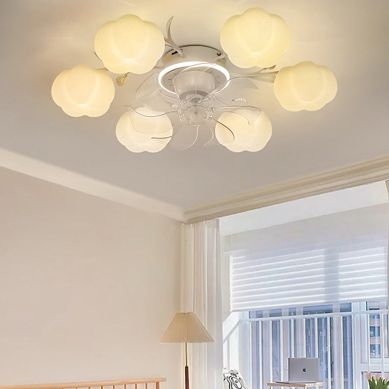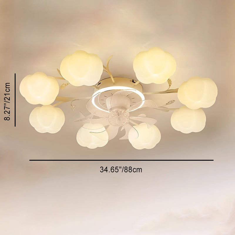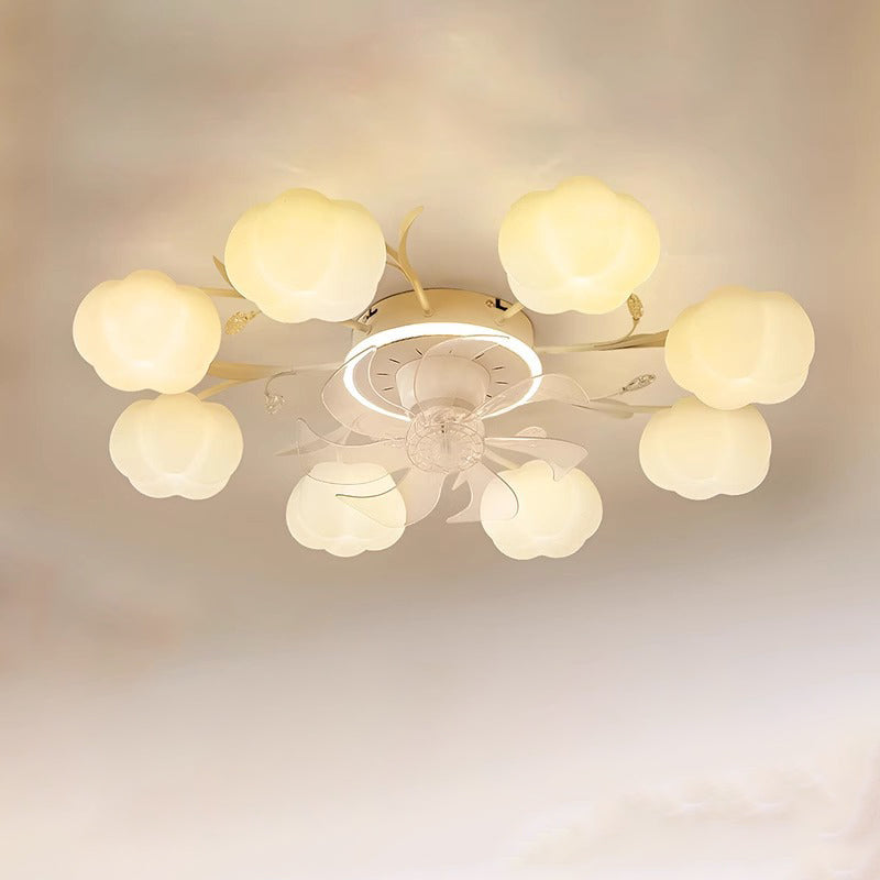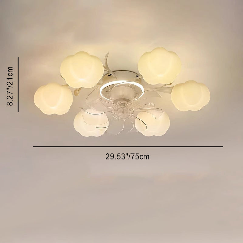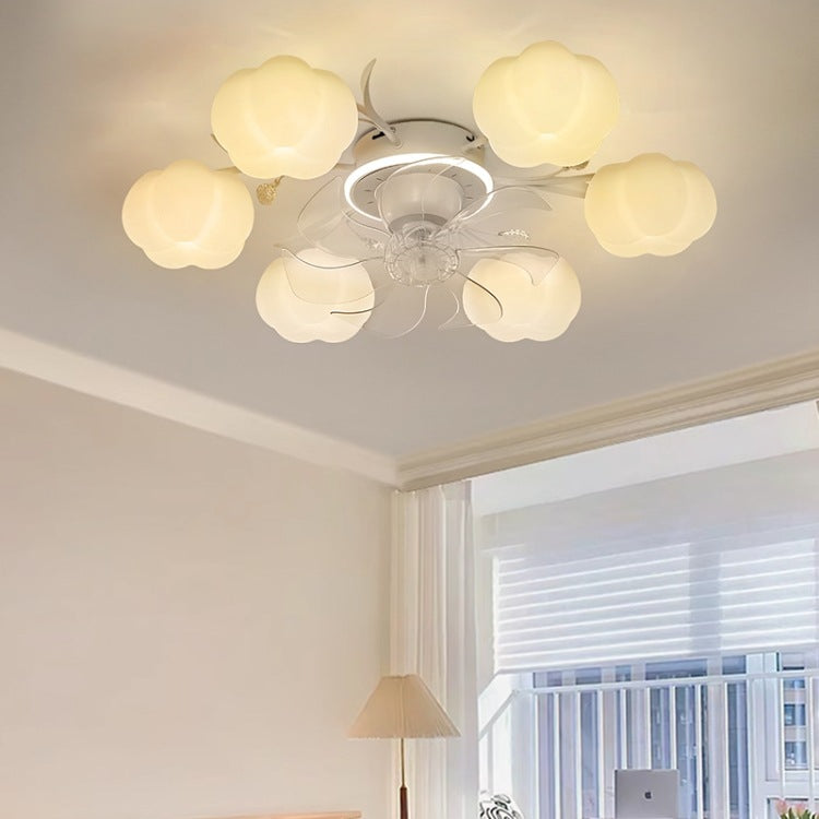 Contemporary Nordic Iron PVC Cotton Pumpkin 6/8/10 Light Semi-Flush Mount Ceiling Fan Light For Bedroom