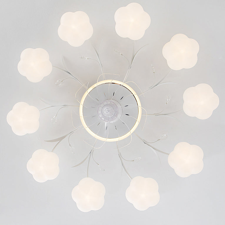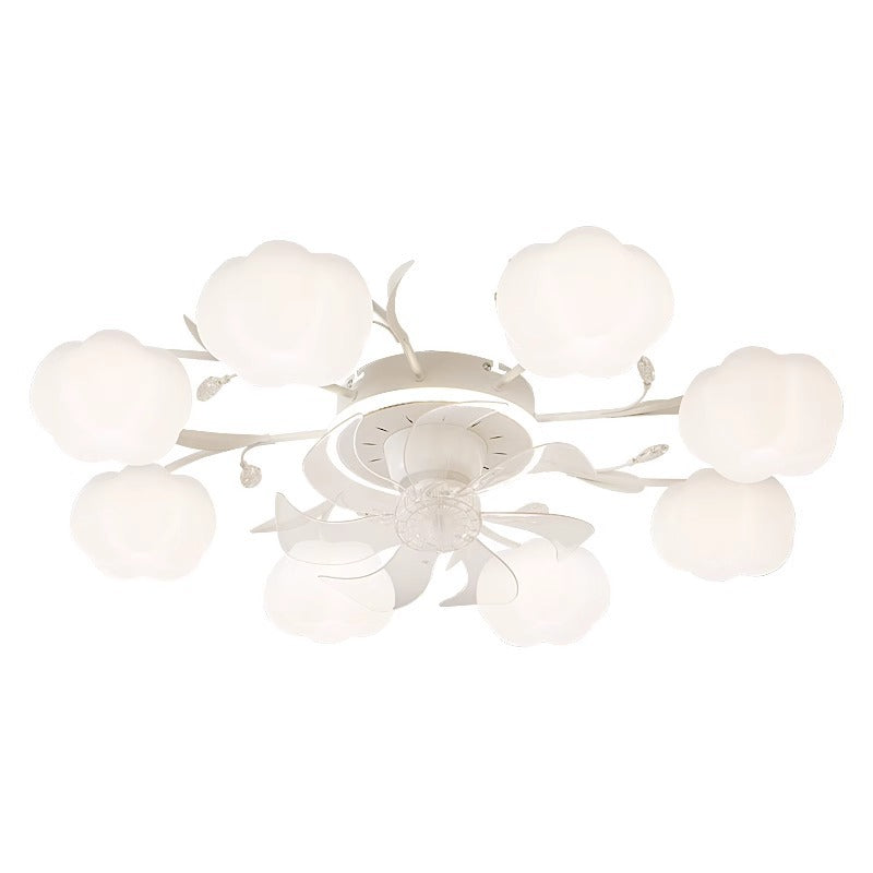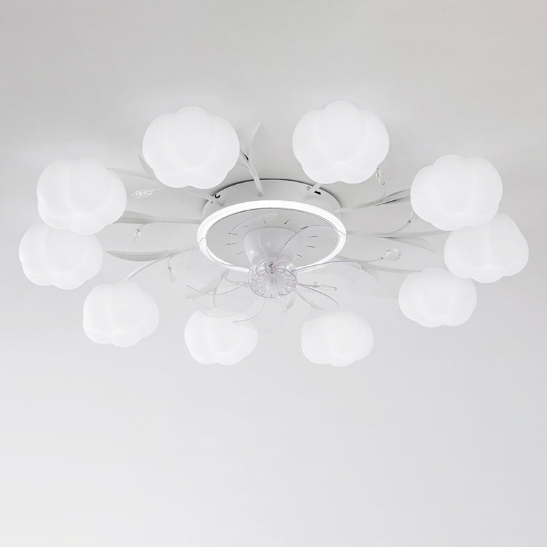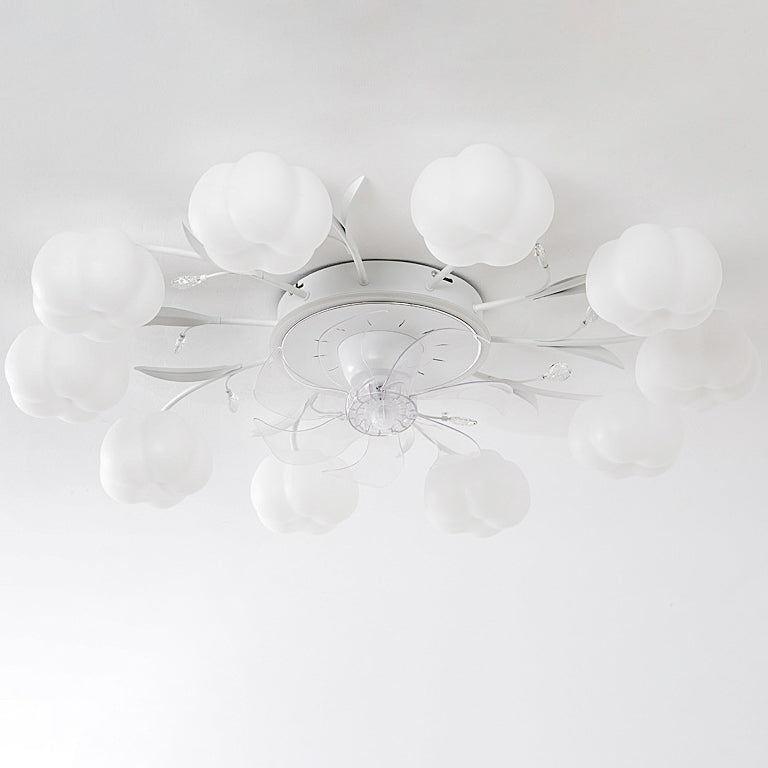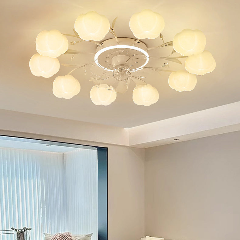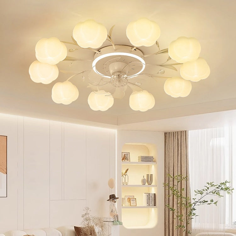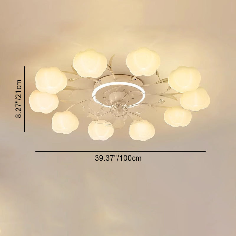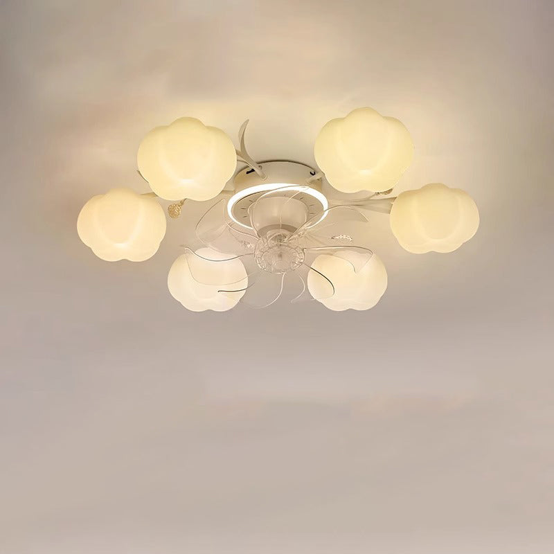 Contemporary Nordic Iron PVC Cotton Pumpkin 6/8/10 Light Semi-Flush Mount Ceiling Fan Light For Bedroom
