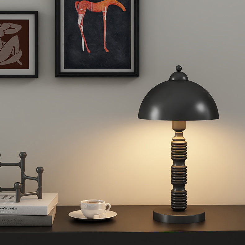 Contemporary Nordic Iron Round Shade Pleated Base 1-Light Table Lamp For Bedroom