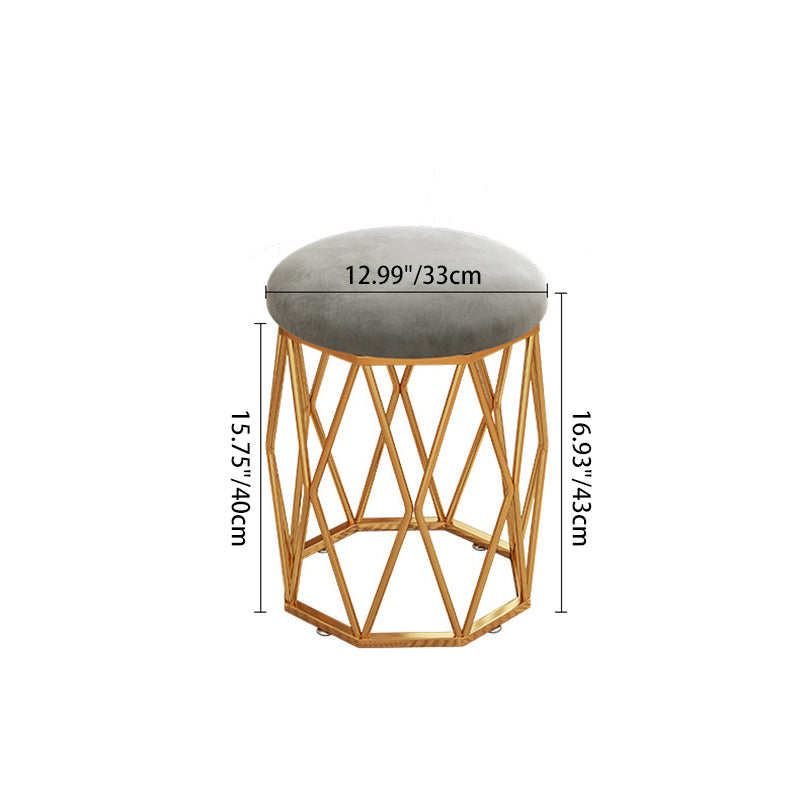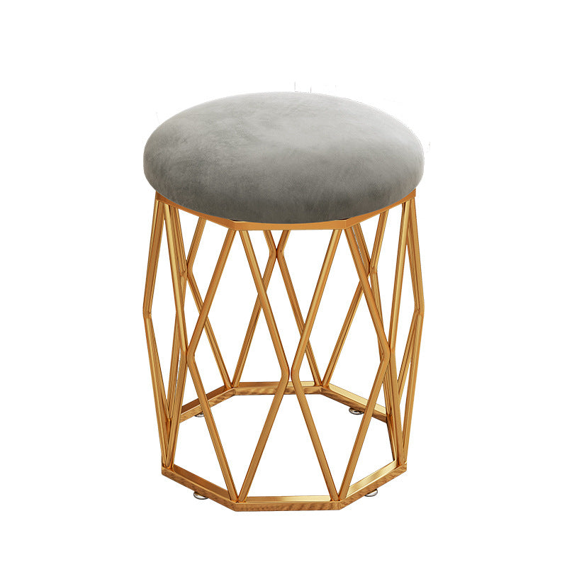 Contemporary Nordic Iron Velvet & Tech Fabric Round Vanity Stool With Diamond Legs For Bedroom