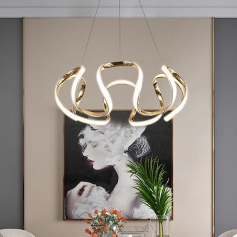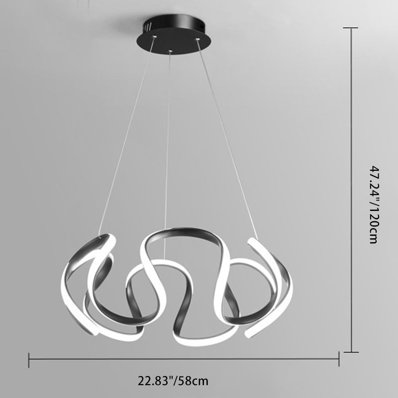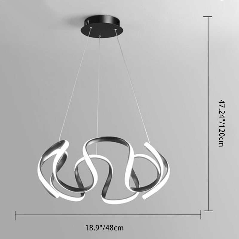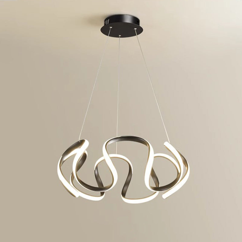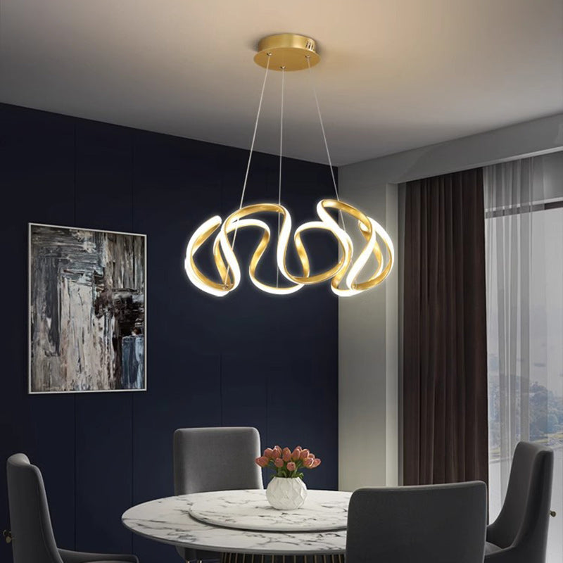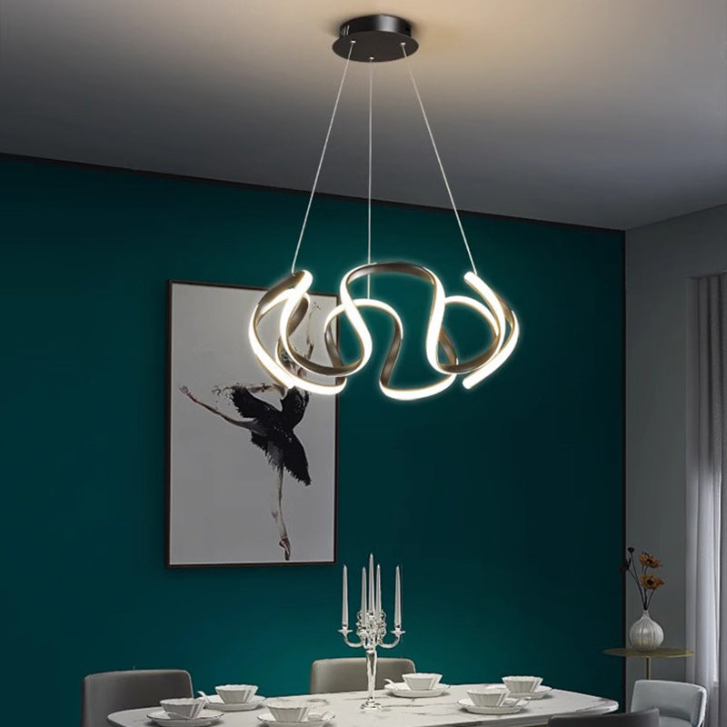 Contemporary Nordic Irregular Curve Iron Aluminum Silicone LED Chandeliers For Dining Room