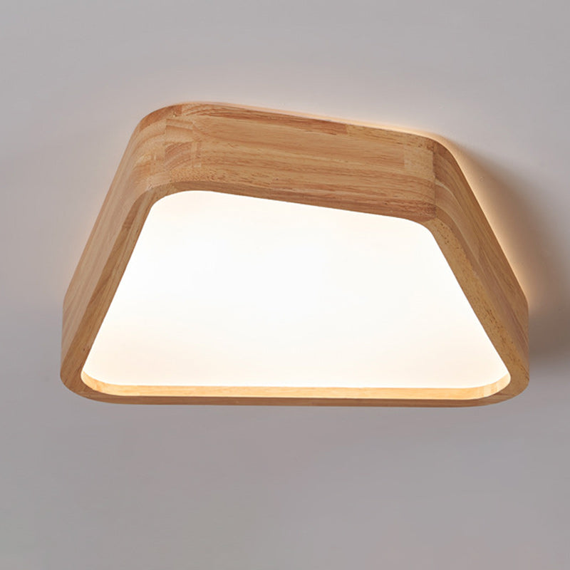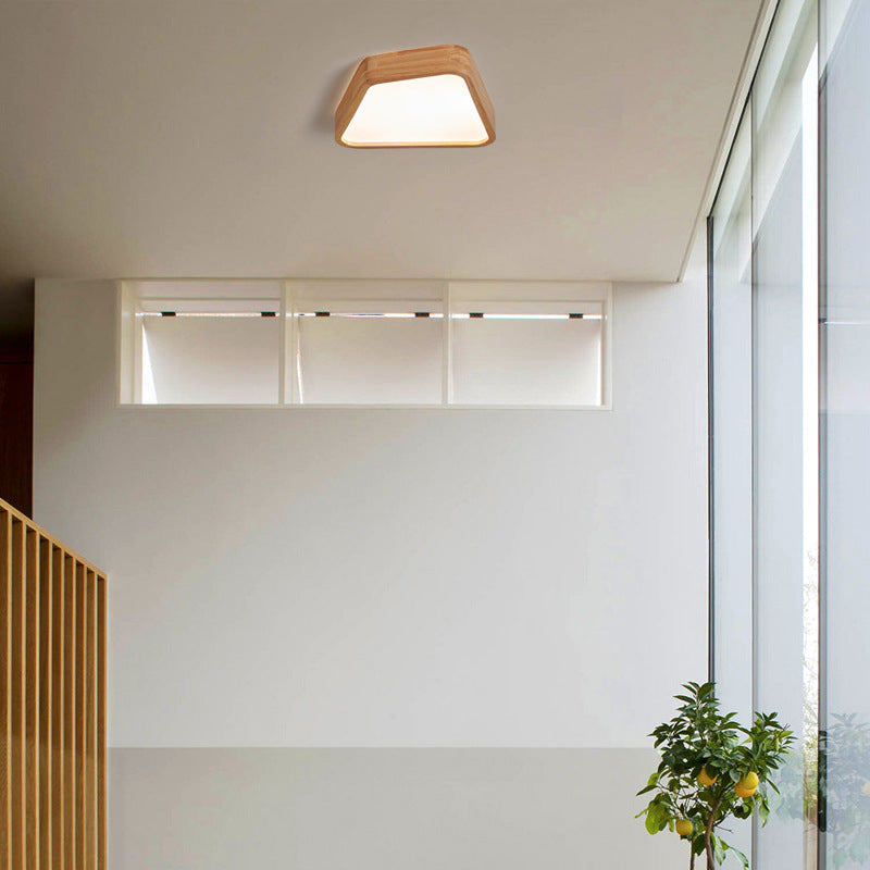 Contemporary Nordic Irregular Trapezoidal Wood PVC LED Flush Mount Ceiling Light For Hallway