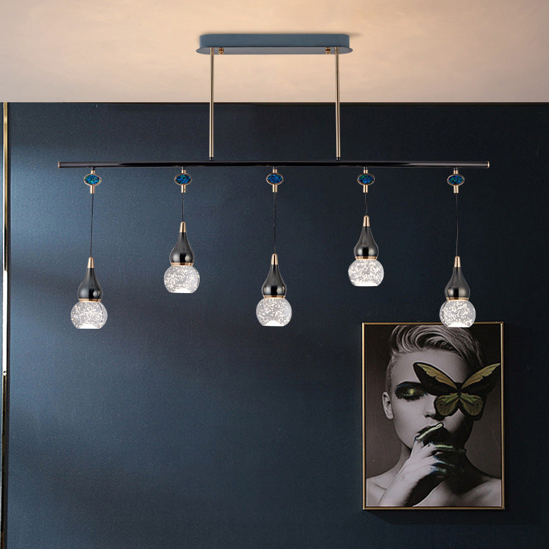 Contemporary Nordic Long Gourd Aluminum Iron Bubble Crystal LED Island Light Chandelier For Dining Room
