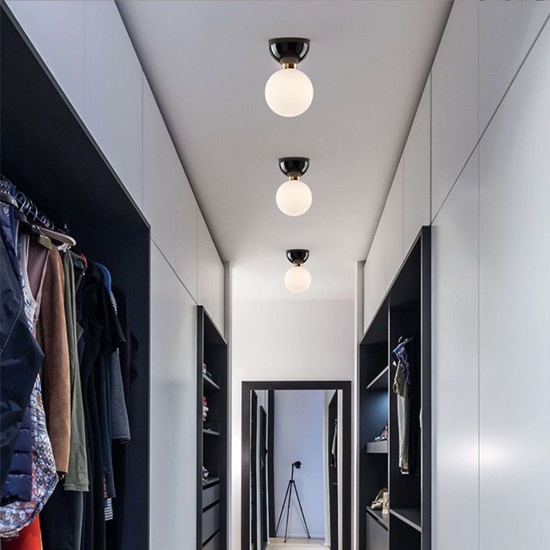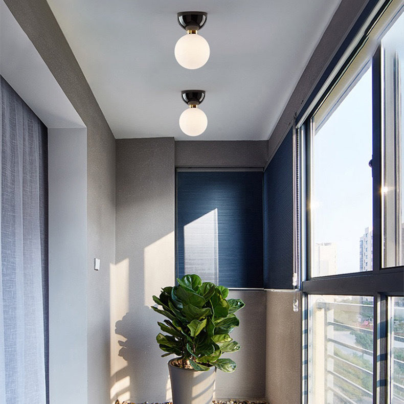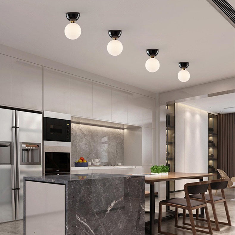 Contemporary Nordic Magic Bean Round Orb Iron Glass 1-Light Semi-Flush Mount Ceiling Light For Hallway