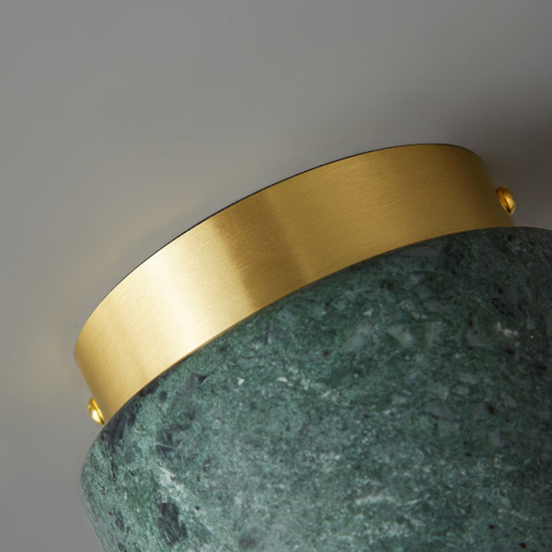 Contemporary Nordic Marble Metal Glass Cylinder Round 1-Light Semi-Flush Mount Ceiling Light For Hallway