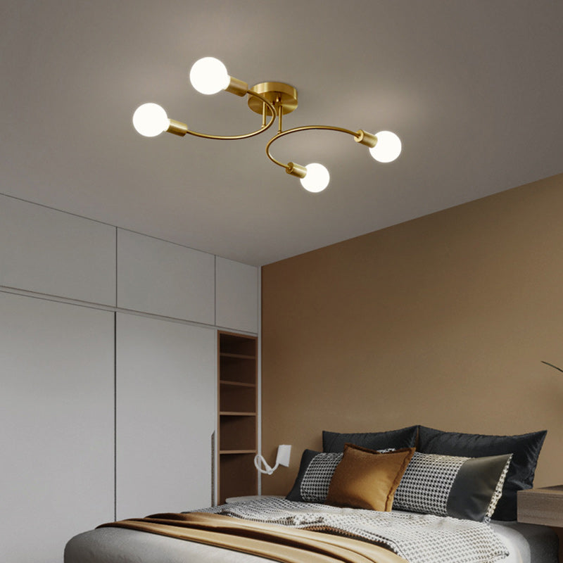 Contemporary Nordic Metal Curved 4/6/8-Light Semi-Flush Mount Ceiling Light For Bedroom & Living Room