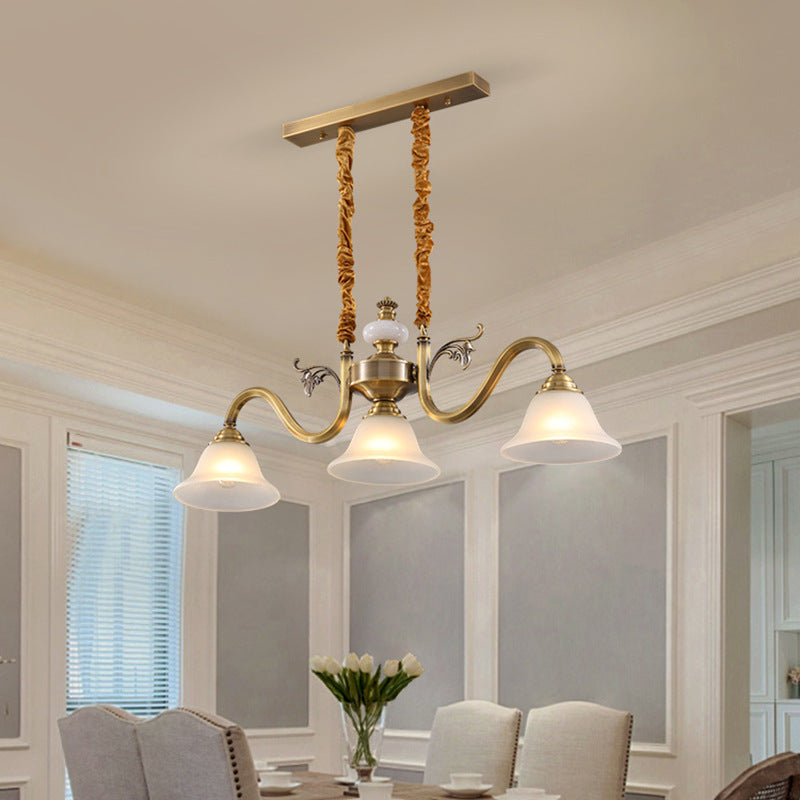 Contemporary Nordic Morning Glory Glass Lampshade Copper Jade 3 - Light Chandelier For Dining Room