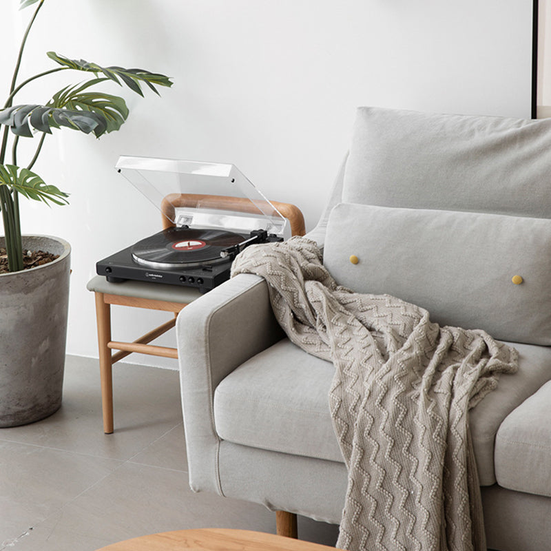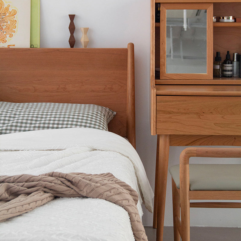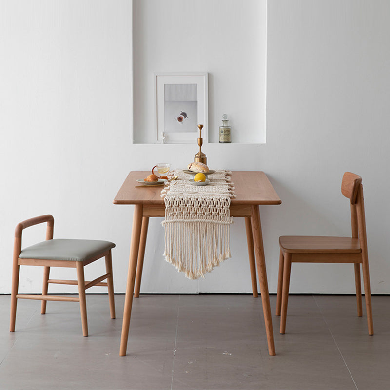 Contemporary Nordic Oak PU Leather Square Vanity Stool With Backrest & Footrest For Bedroom & Dining Room
