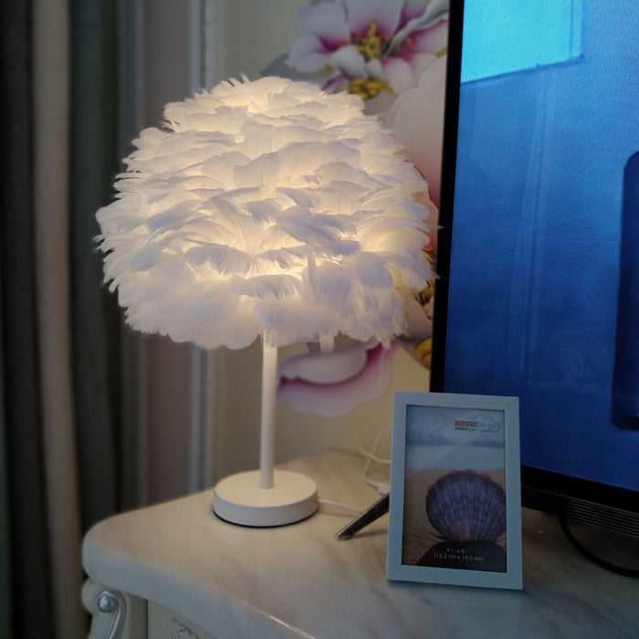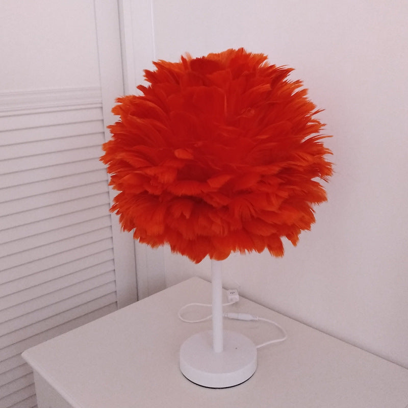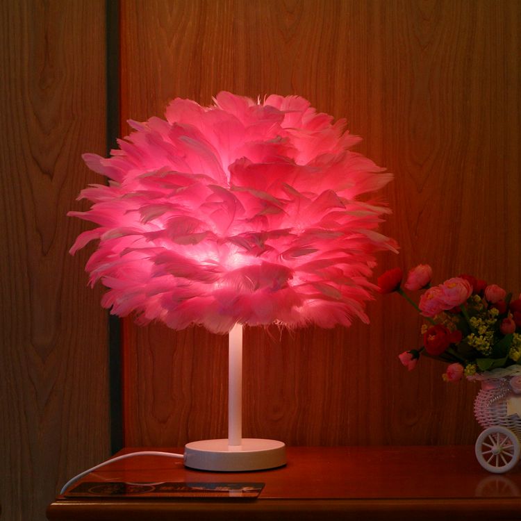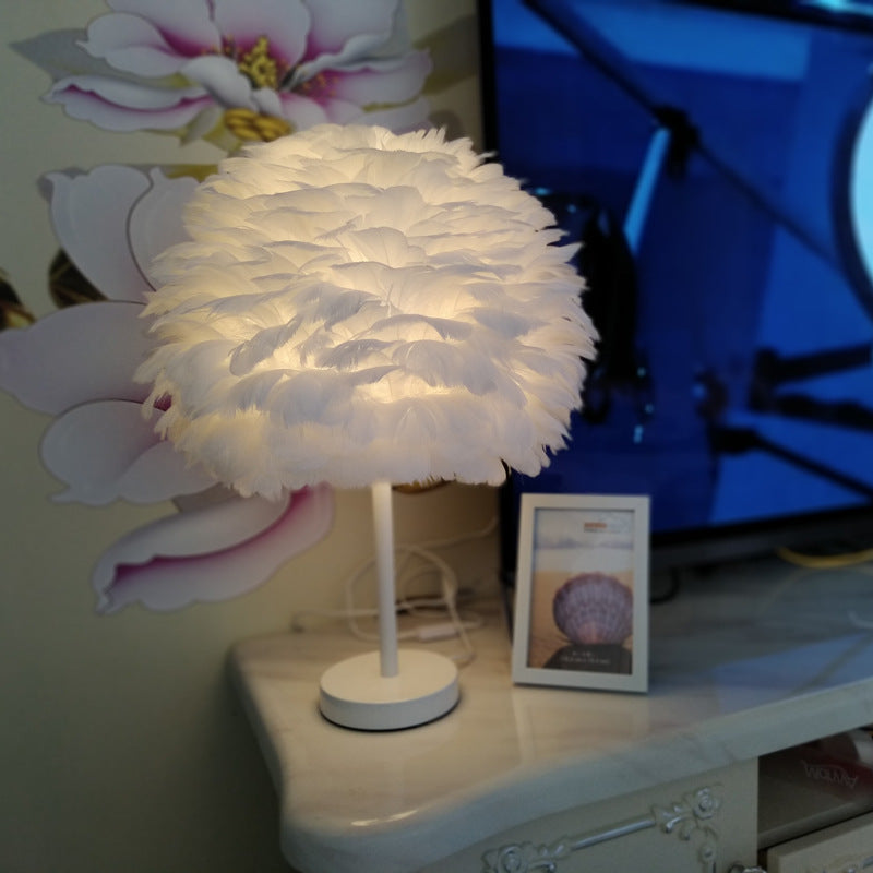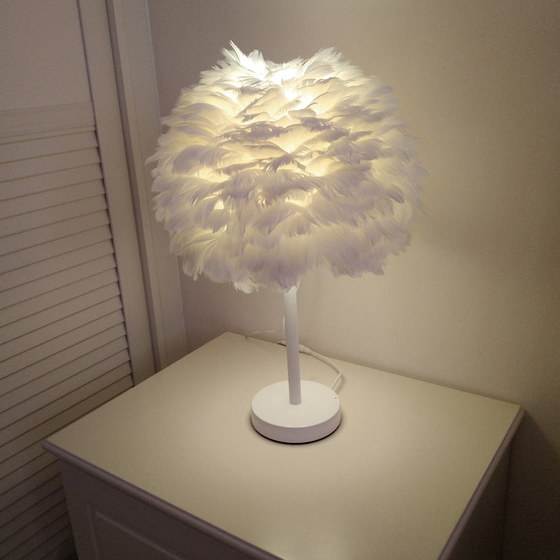 Contemporary Nordic Oval Iron Feather 1-Light Table Lamp For Living Room