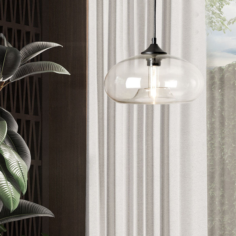 Contemporary Nordic Oval-Shaped Glass Shade Iron 1-Light Pendant Light For Living Room