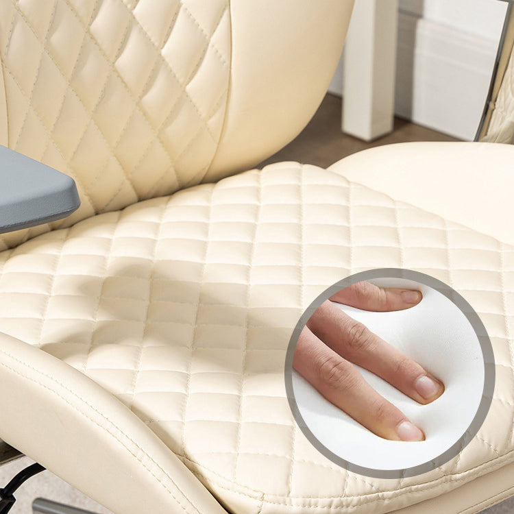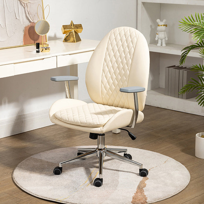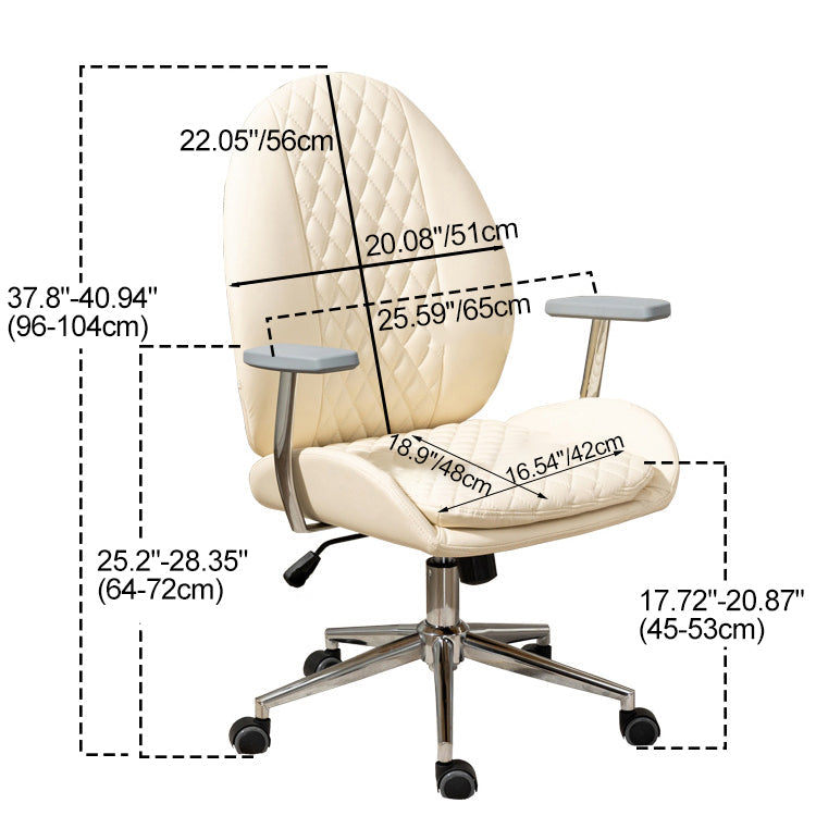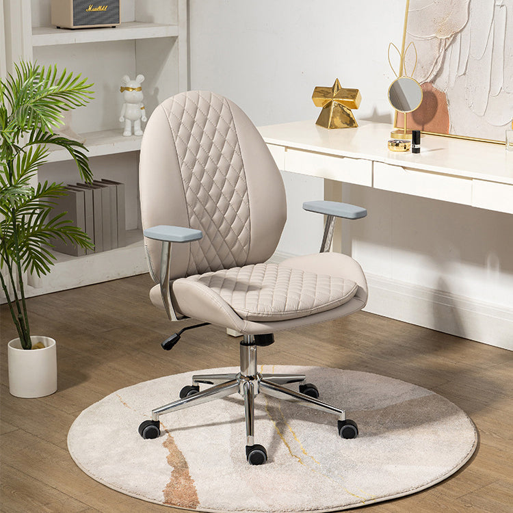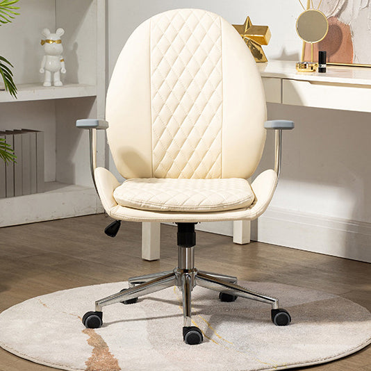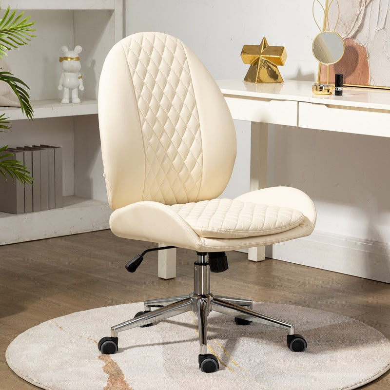 This Nordic-style vanity chair features a unique scallop and oval design with PU leather upholstery and soft foam padding for all-day comfort. Equipped with a backrest, armrests, 360° swivel, height adjustment, and smooth mobility, it’s perfect for bedrooms, offices, or studies. Available in brown, cream white, and light gray.