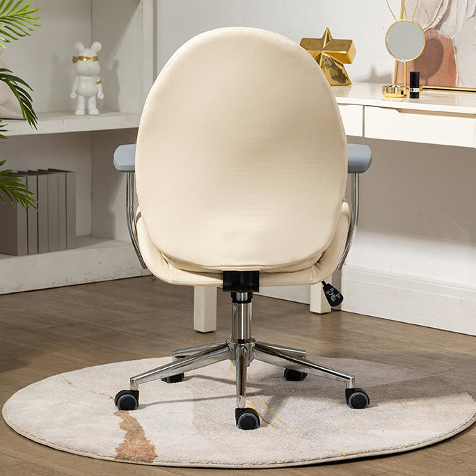 Contemporary Nordic PU Leather Steel Scallop Oval Vanity Stool With Backrest And Armrest For Bedroom