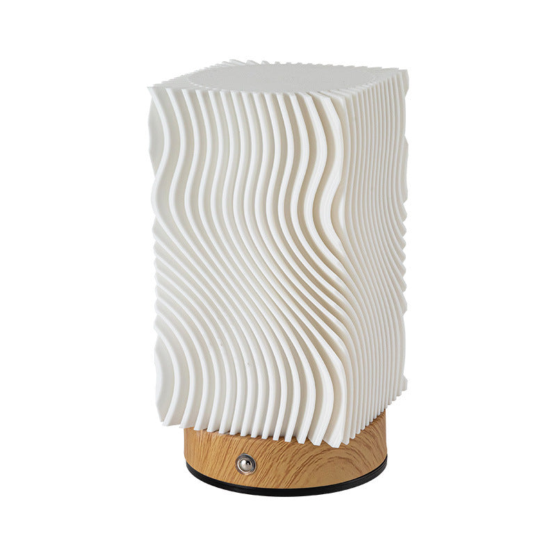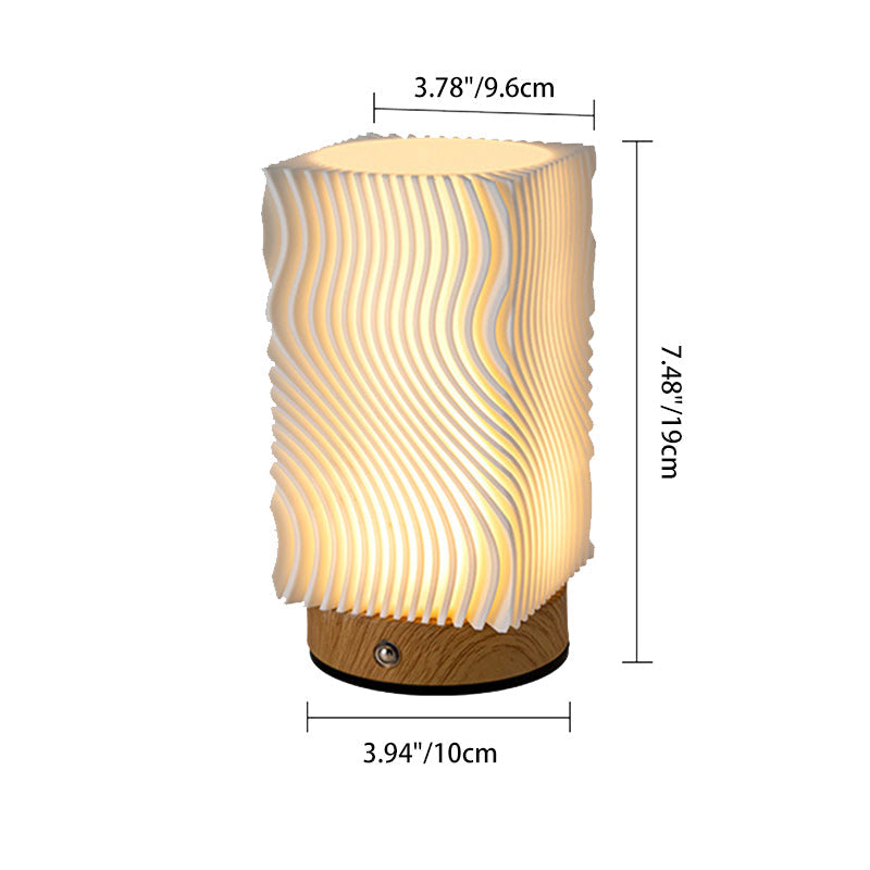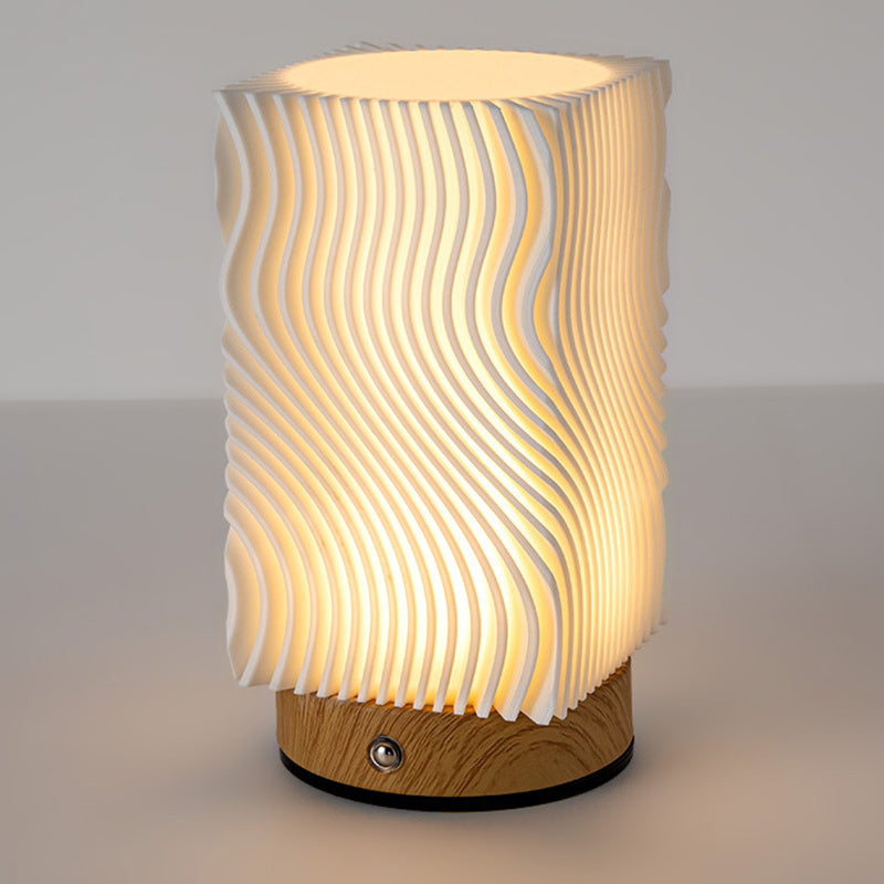 Contemporary Nordic Rechargeable Acrylic Wood Cylinder With Ripple Texture LED Table Lamp Night Light For Bedside