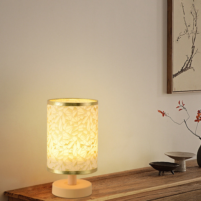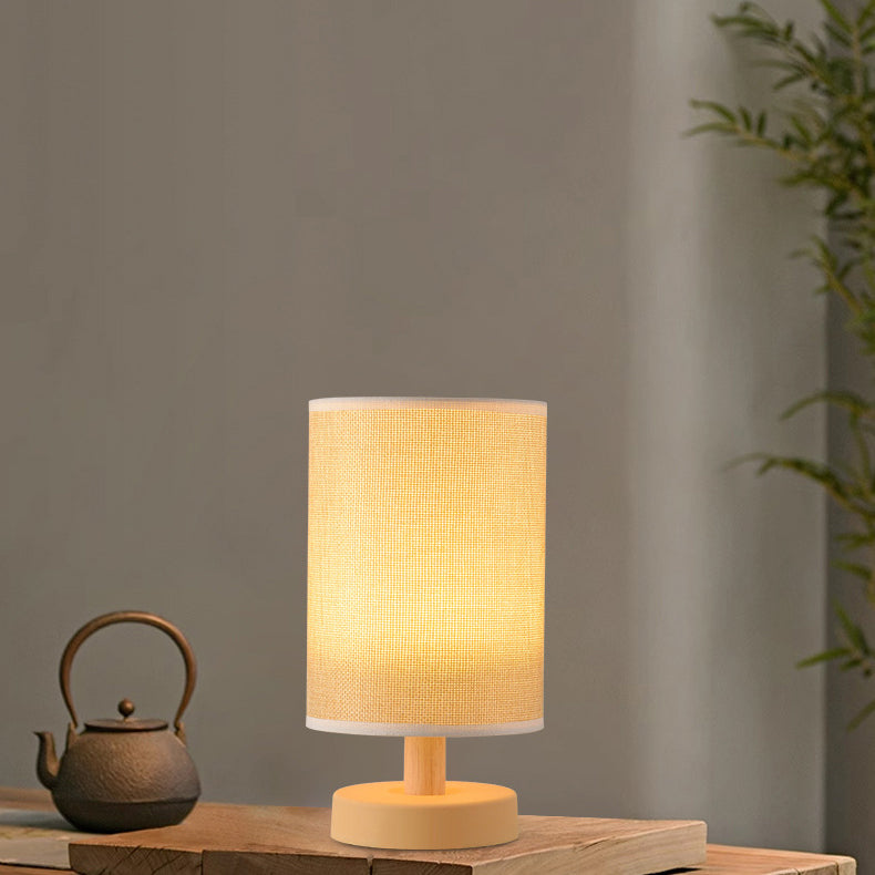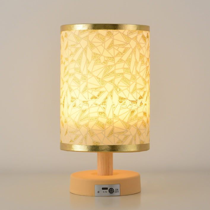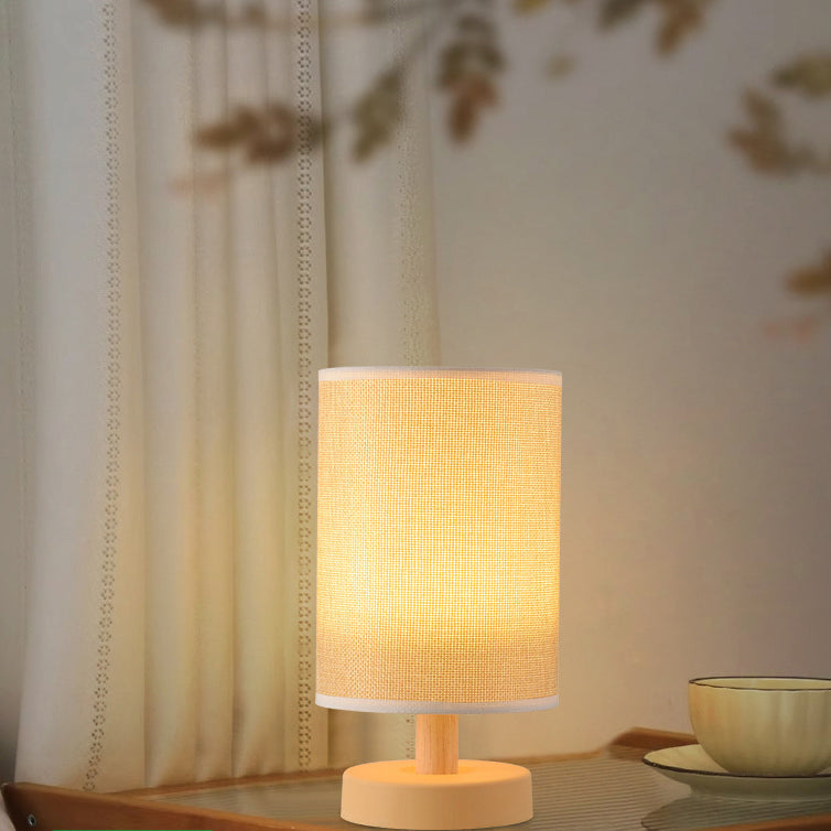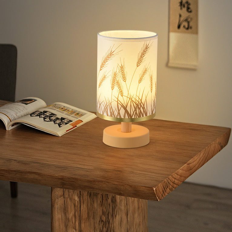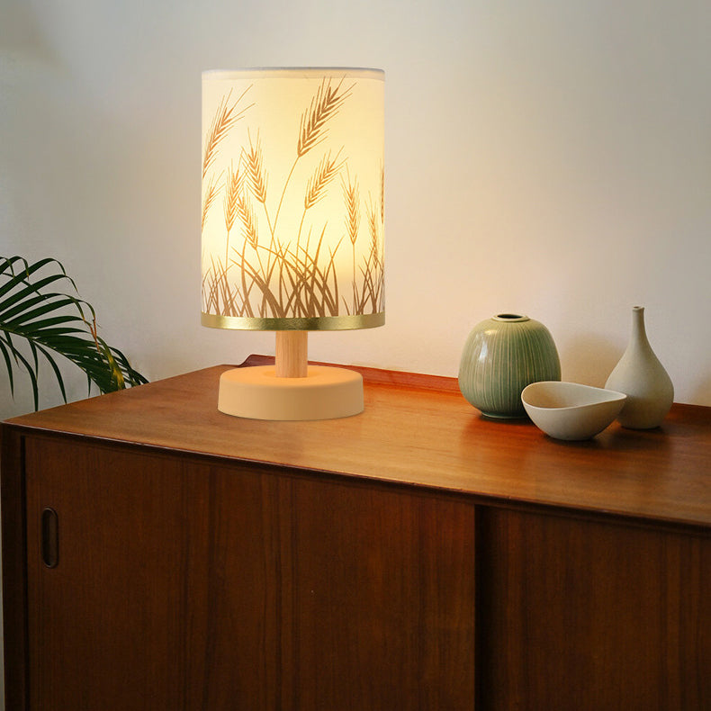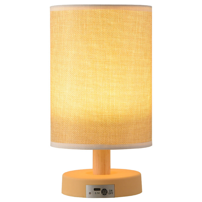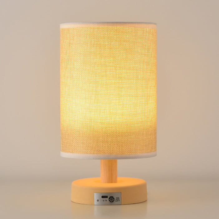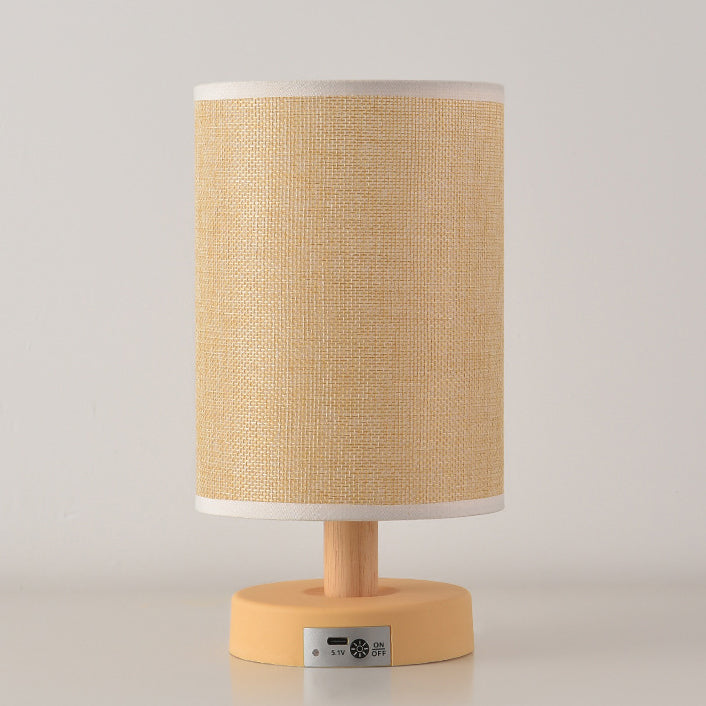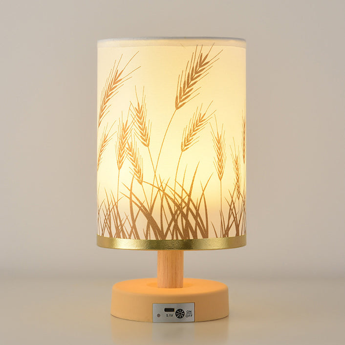 Contemporary Nordic Rechargeable PP Wood Fabric Cylinder Maize LED Table Lamp For Bedside