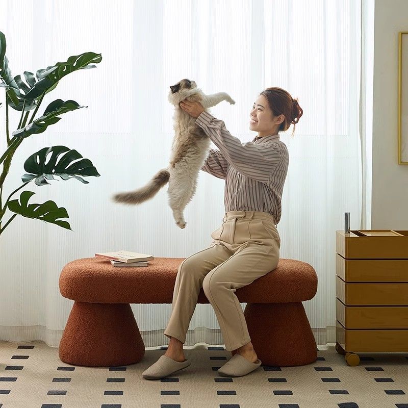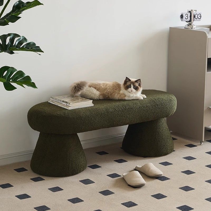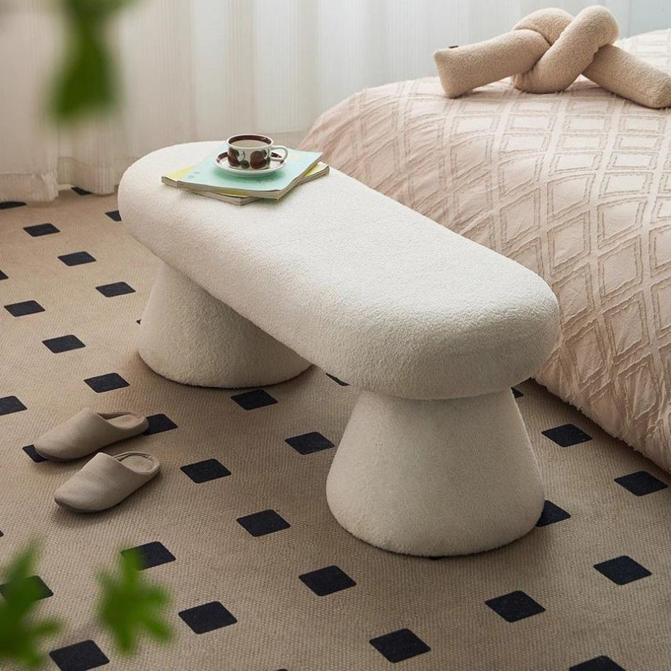 Contemporary Nordic Rectangle Wood Fabric Bench Chair For Bedroom