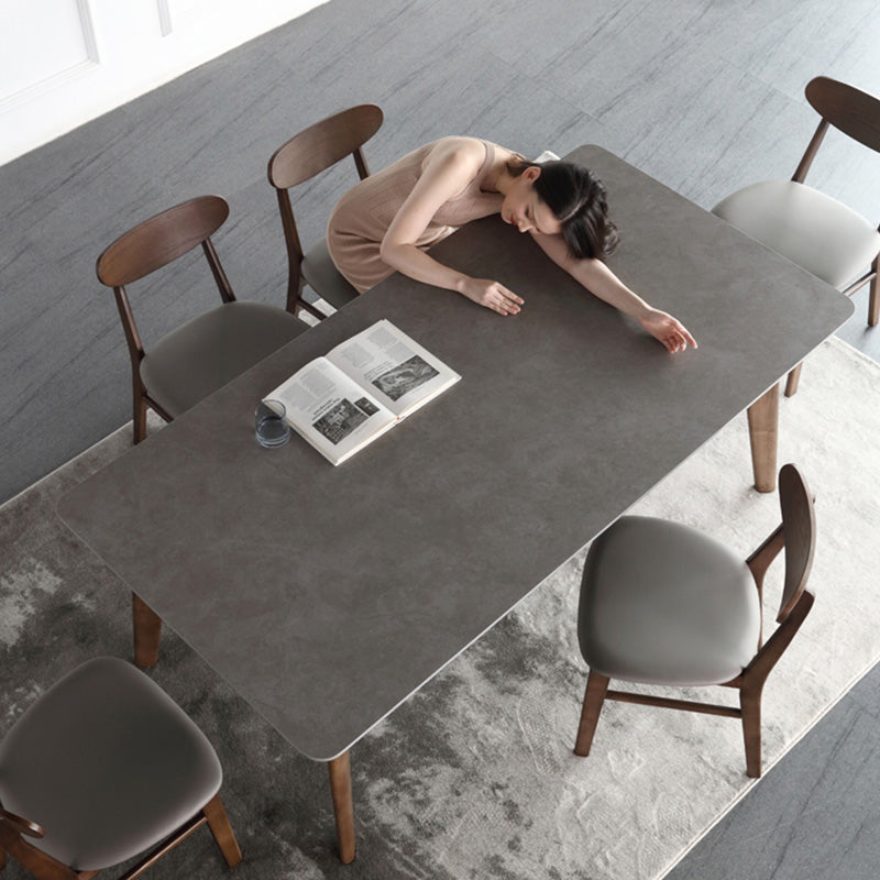 Contemporary Nordic Rectangular Ash Wood Slab Dining Table & Chair Set For 4/6 Seats