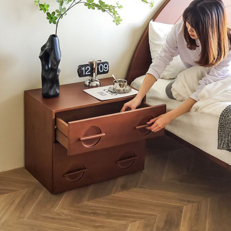 Contemporary Nordic Rectangular Solid Wood Nightstand 2-Drawer For Bedroom