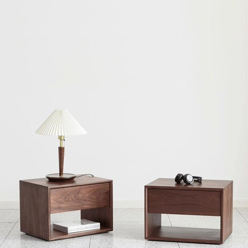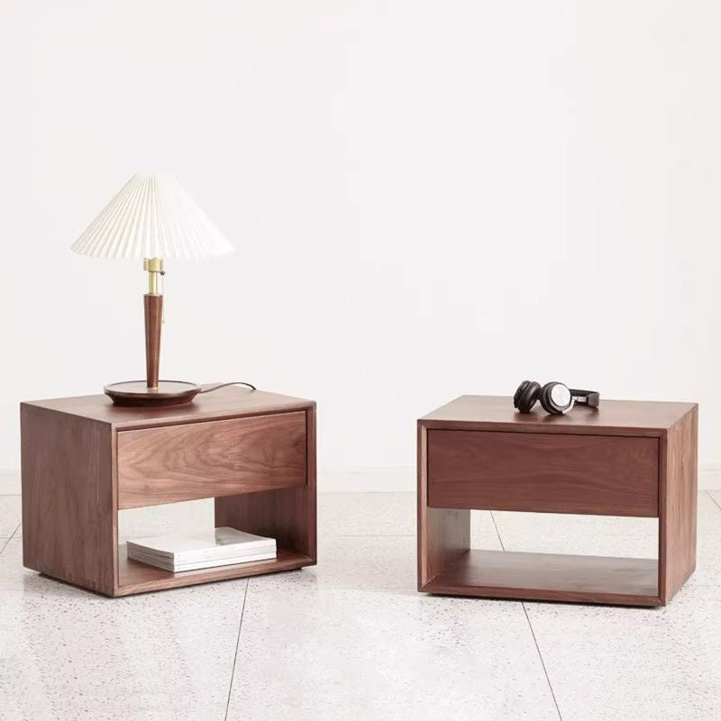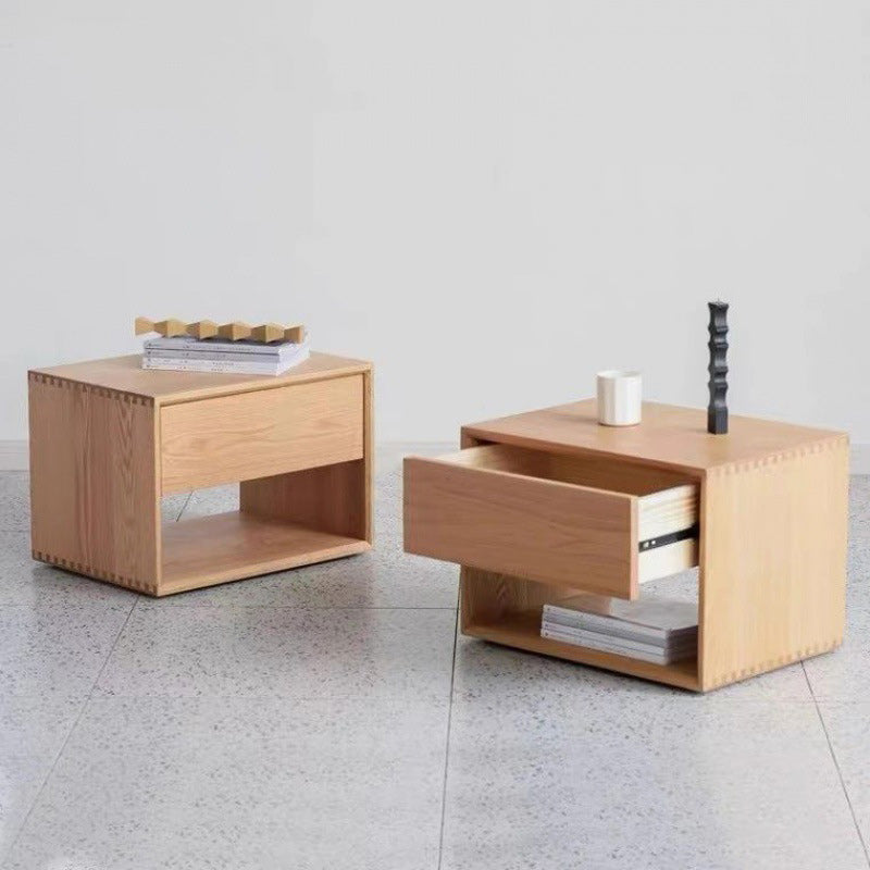 Contemporary Nordic Rectangular Wood Nightstand 1-Drawer For Bedroom