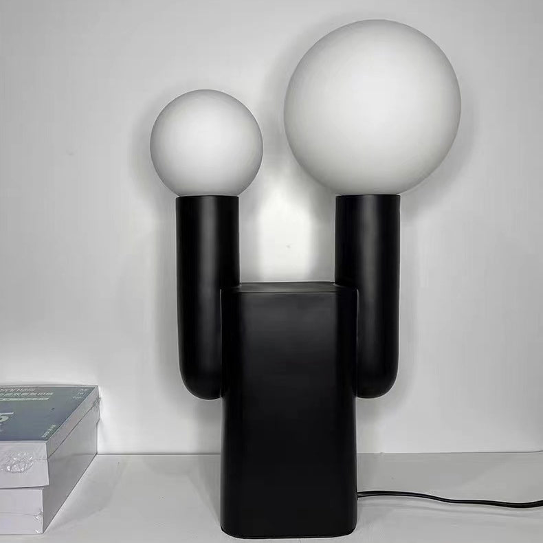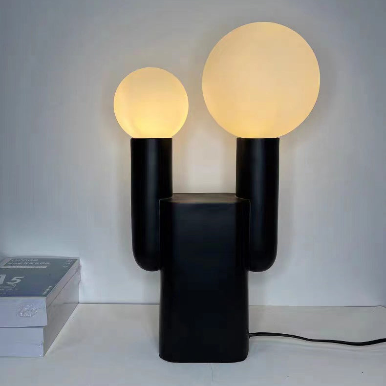 Contemporary Nordic Resin Glass Ball Cylinder Cacti 2-Light Table Lamp For Bedside