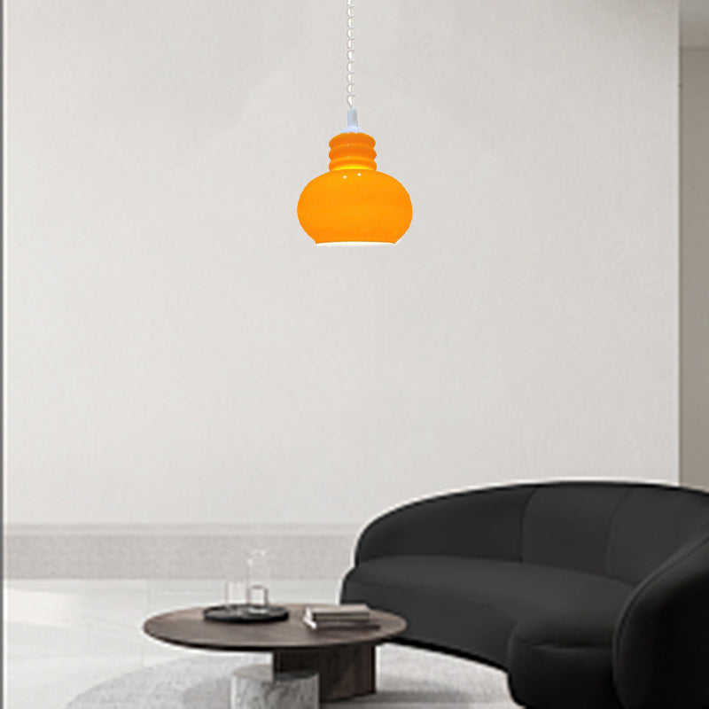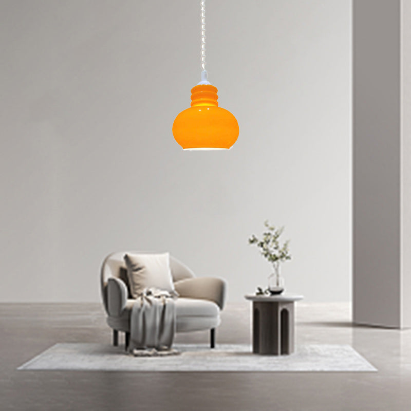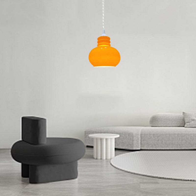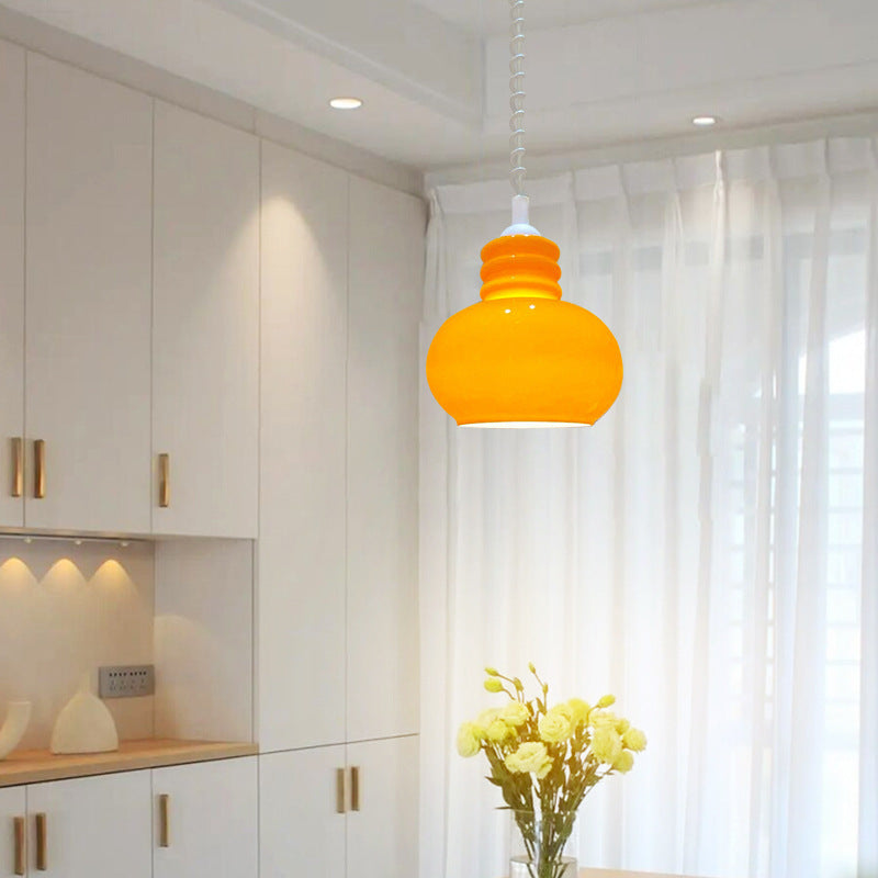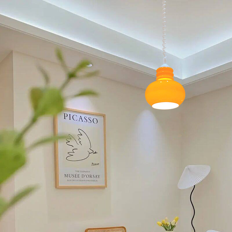 Contemporary Nordic Retractable Orange Glass 1-Light Pendant Light For Living Room