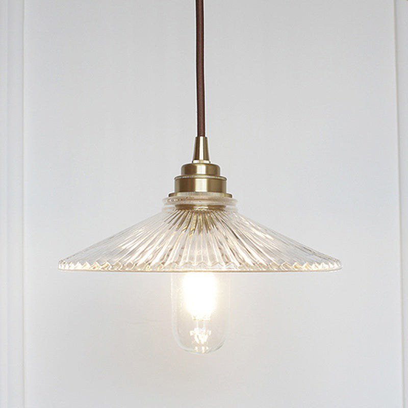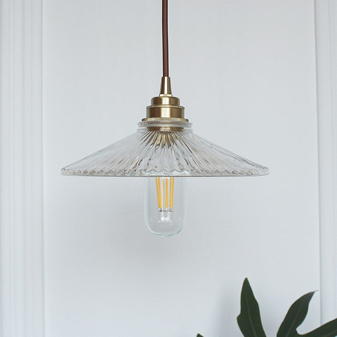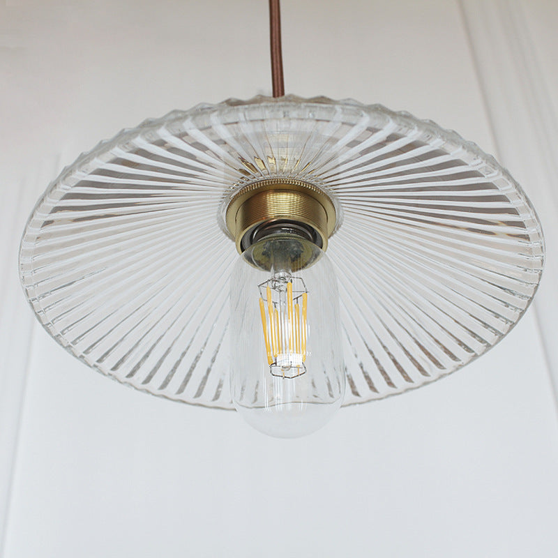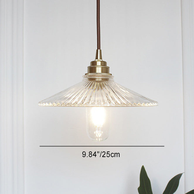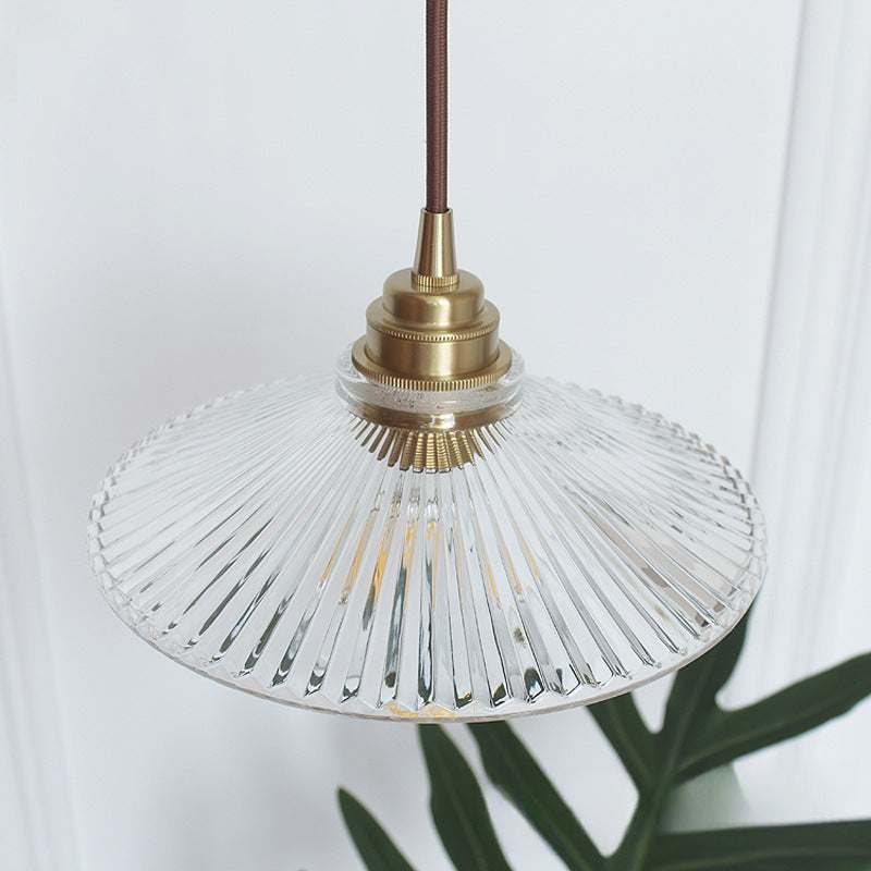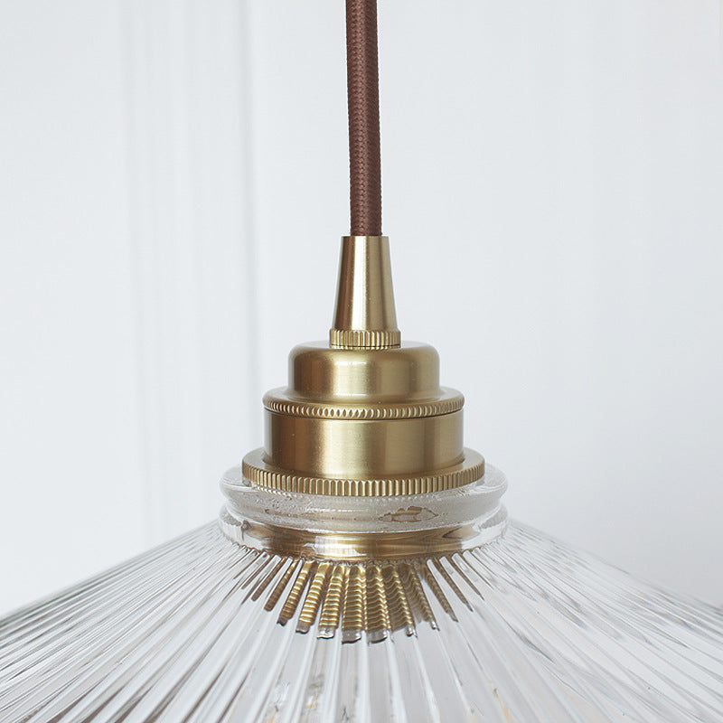 Contemporary Nordic Round Brass Striped Glass 1-Light Pendant Light For Living Room