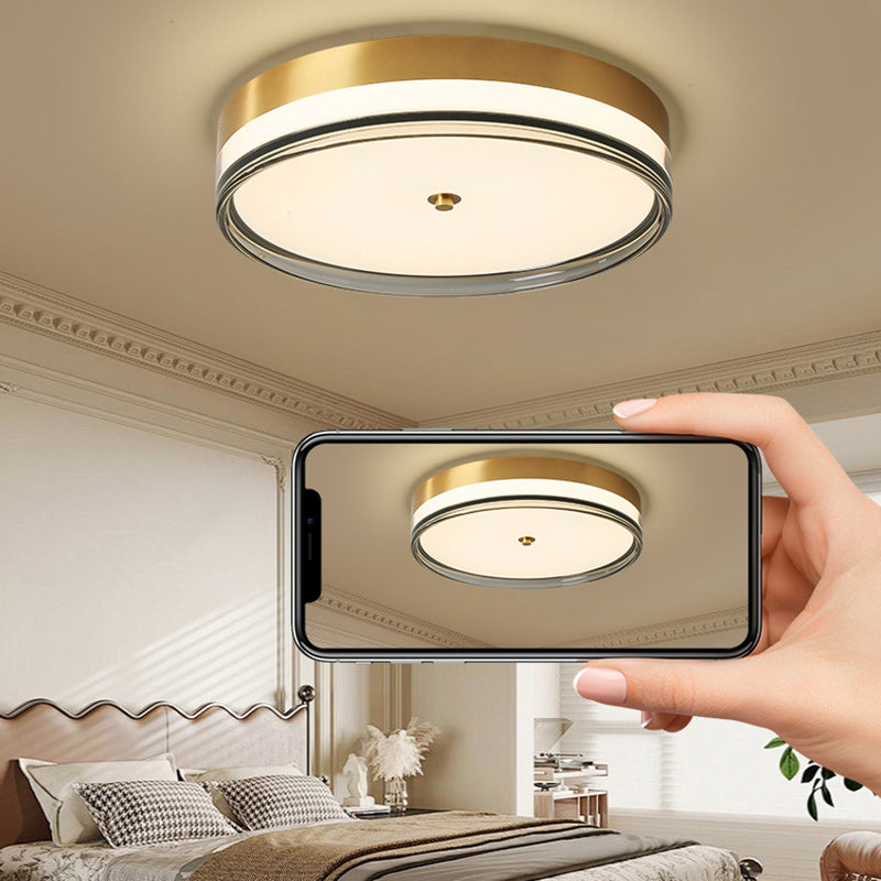 Contemporary Nordic Round Copper Acrylic LED Flush Mount Ceiling Light For Bedroom