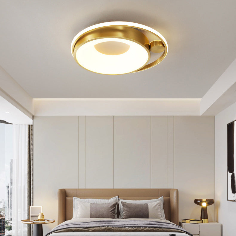 Contemporary Nordic Round Copper Silicone Acrylic LED Flush Mount Ceiling Light For Bedroom