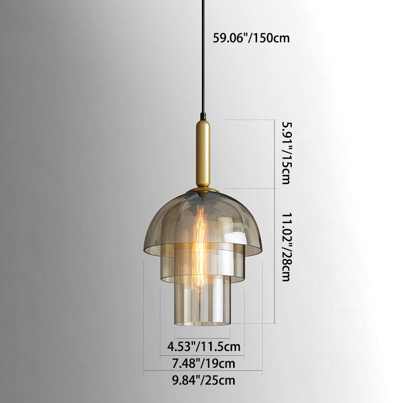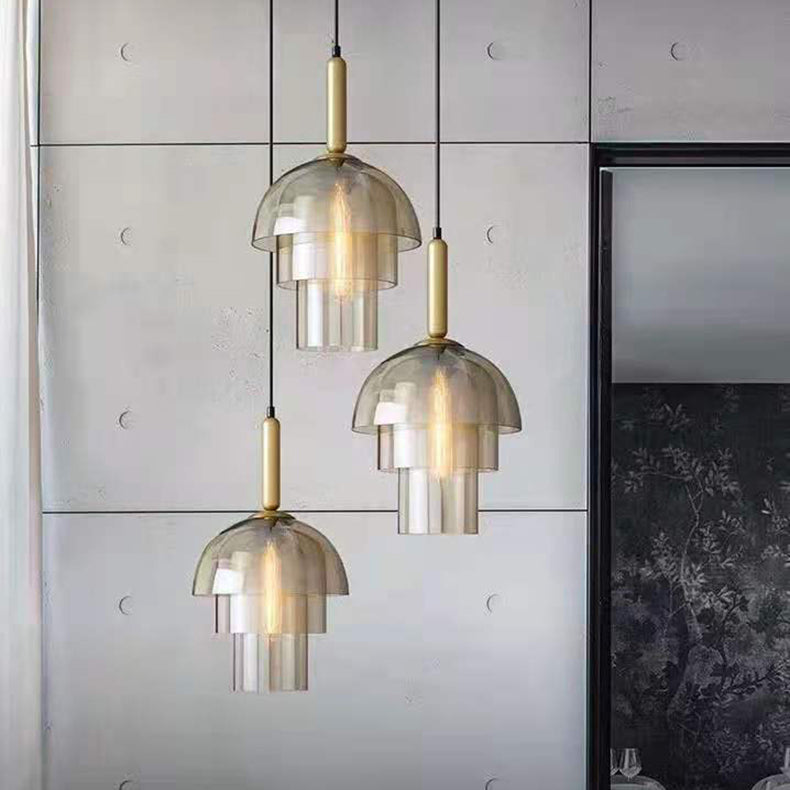 Contemporary Nordic Round Dome Triple Cylinder Iron Glass 1-Light Pendant Light For Living Room