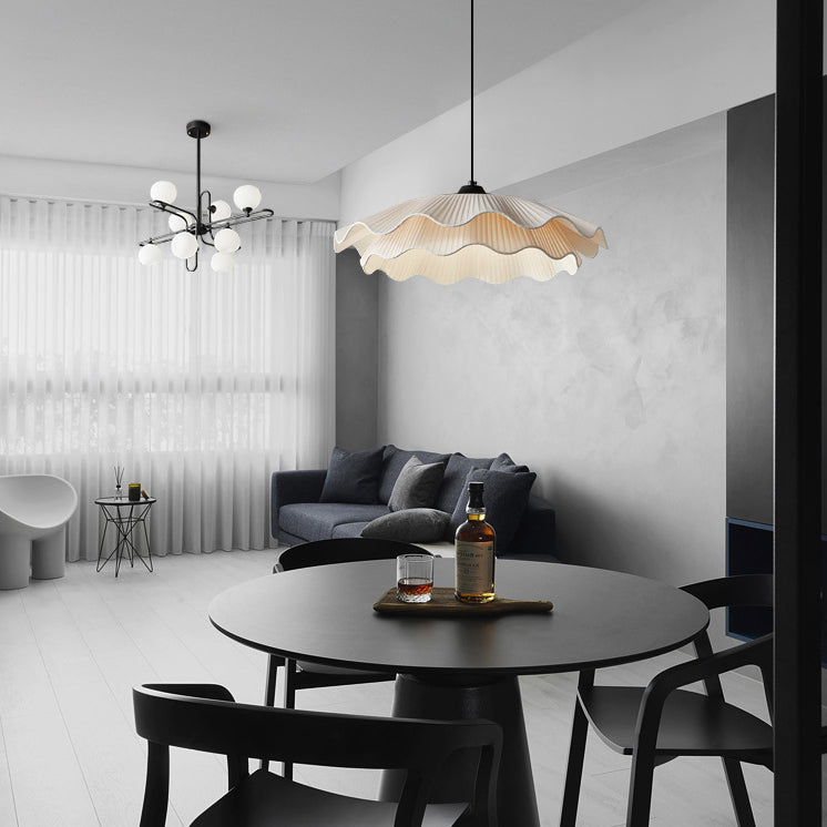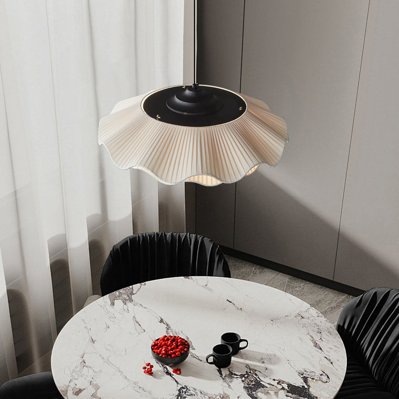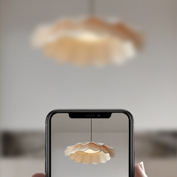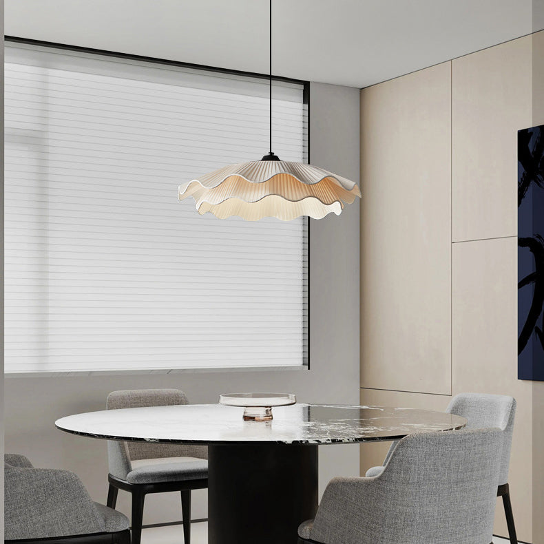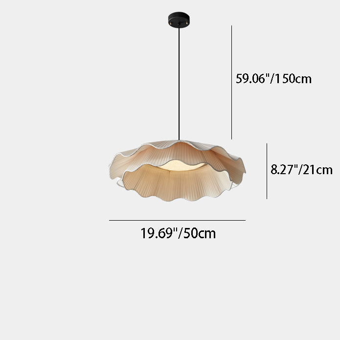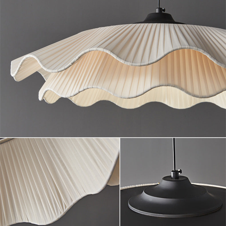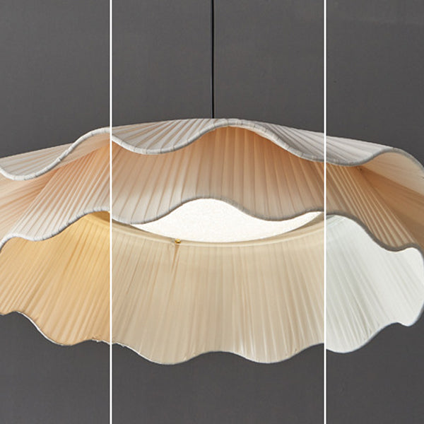 Contemporary Nordic Round Double Layer Petal Full Copper Handmade Fabric Shade LED Pendant Light For Living Room