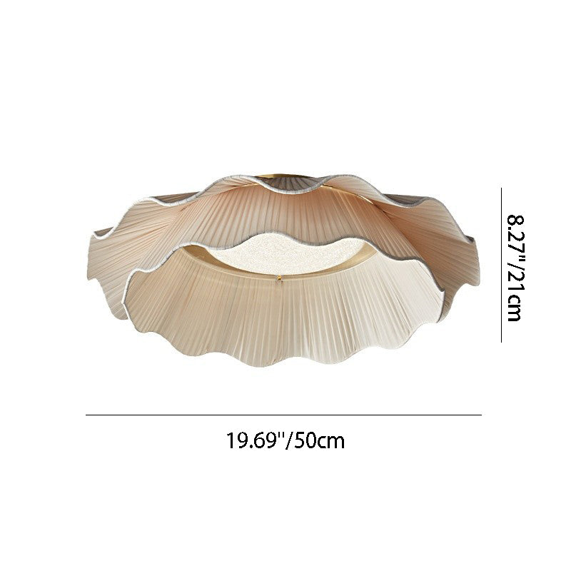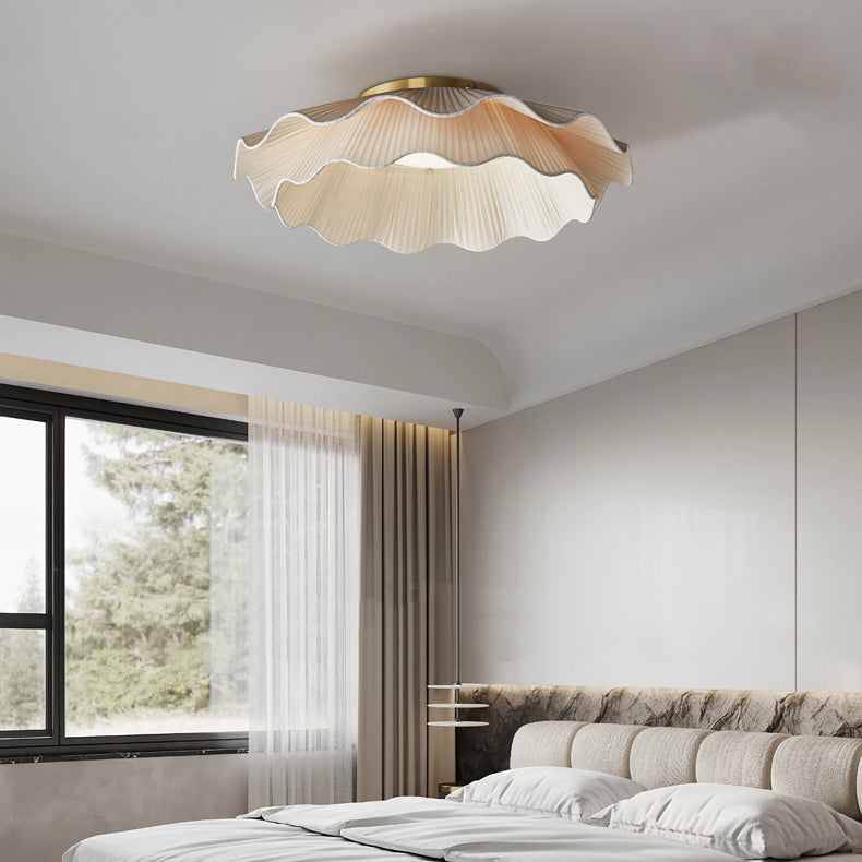 Contemporary Nordic Round Double Layers Petals Full Copper Handmade Fabric Shade LED Flush Mount Ceiling Light For Bedroom