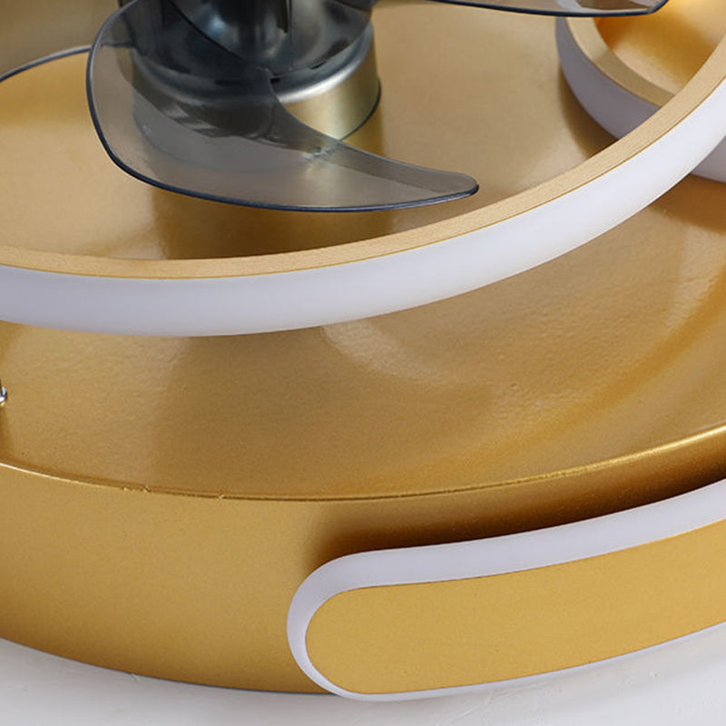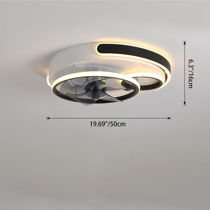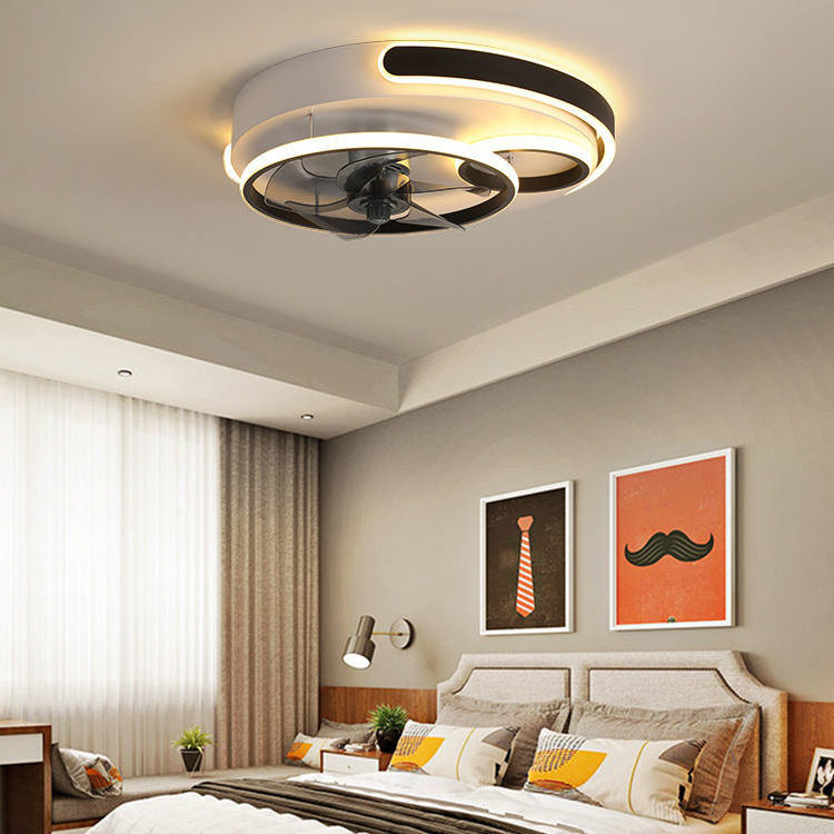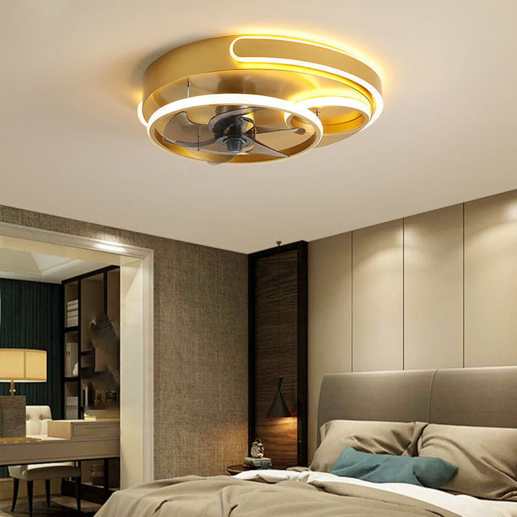 Contemporary Nordic Round Five Fan Blades Iron Aluminum ABS LED Flush Mount Ceiling Fan Light For Bedroom