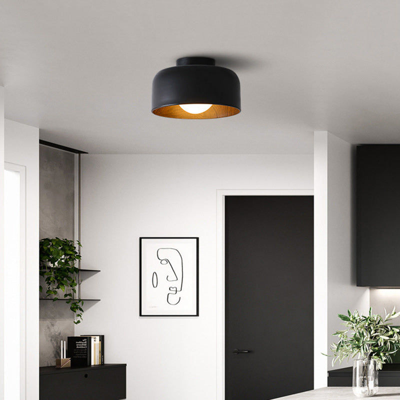 Contemporary Nordic Round Iron Glass 1-Light Semi-Flush Mount Ceiling Light For Living Room