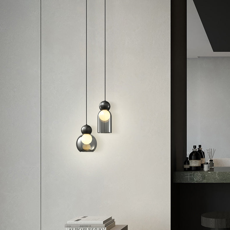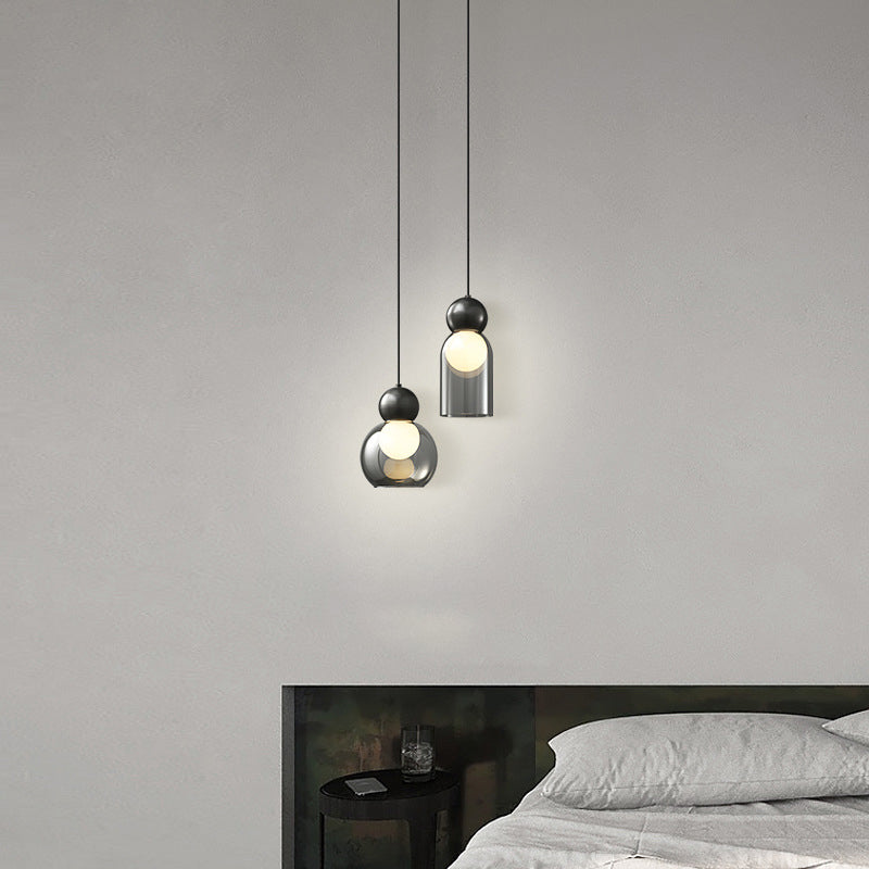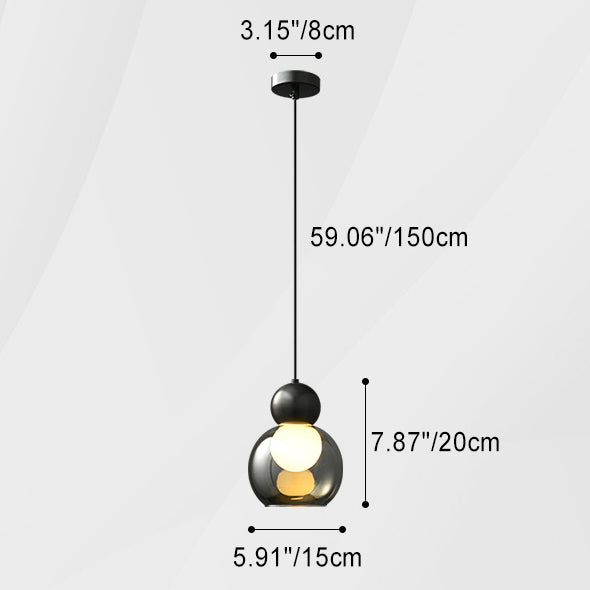 Contemporary Nordic Round Orb Cylinder Copper Glass 1-Light Pendant Light For Living Room
